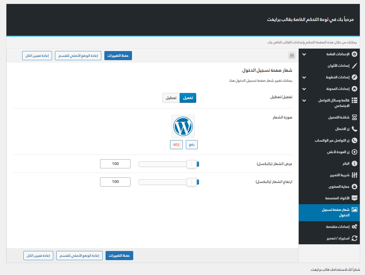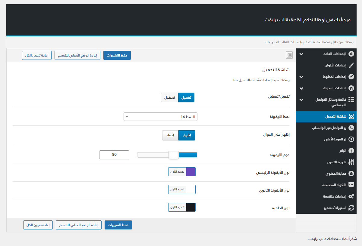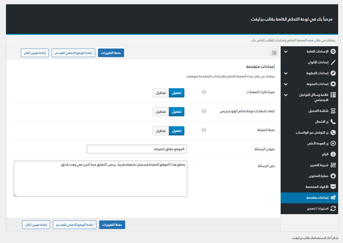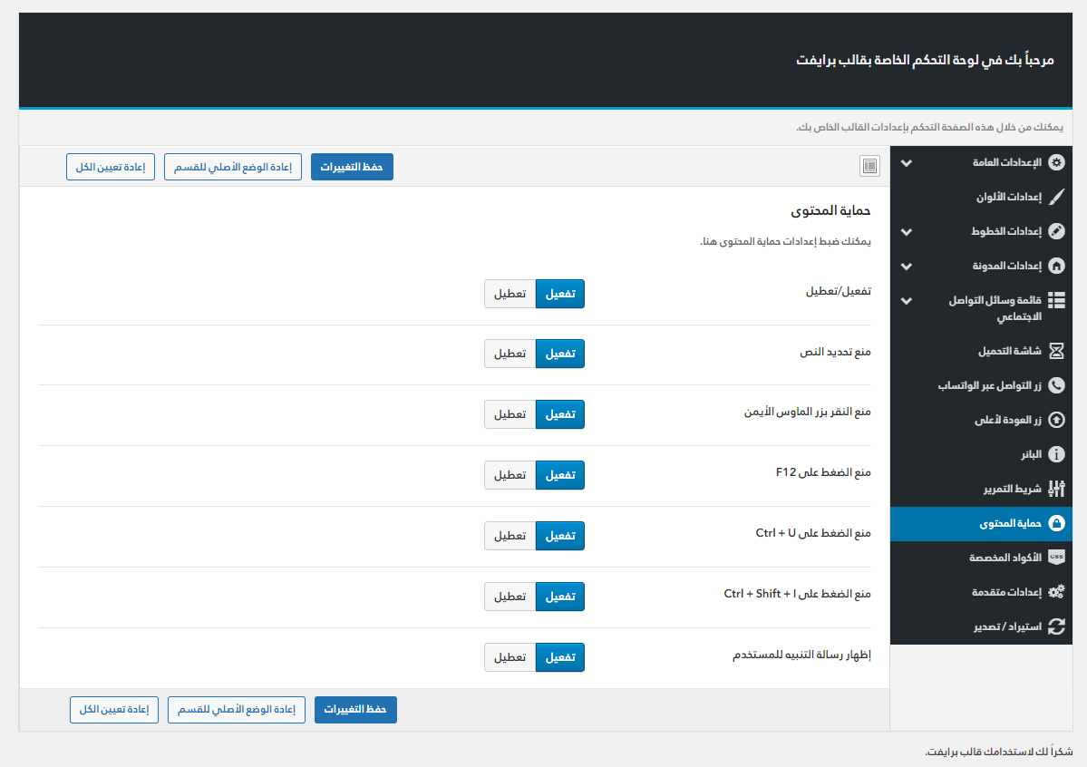يأتي مع برايفت لوحة تحكم خاصة به غنية بالعديد من الميزات المفيدة لتستطيع تخصيص موقعك كما ترغب.