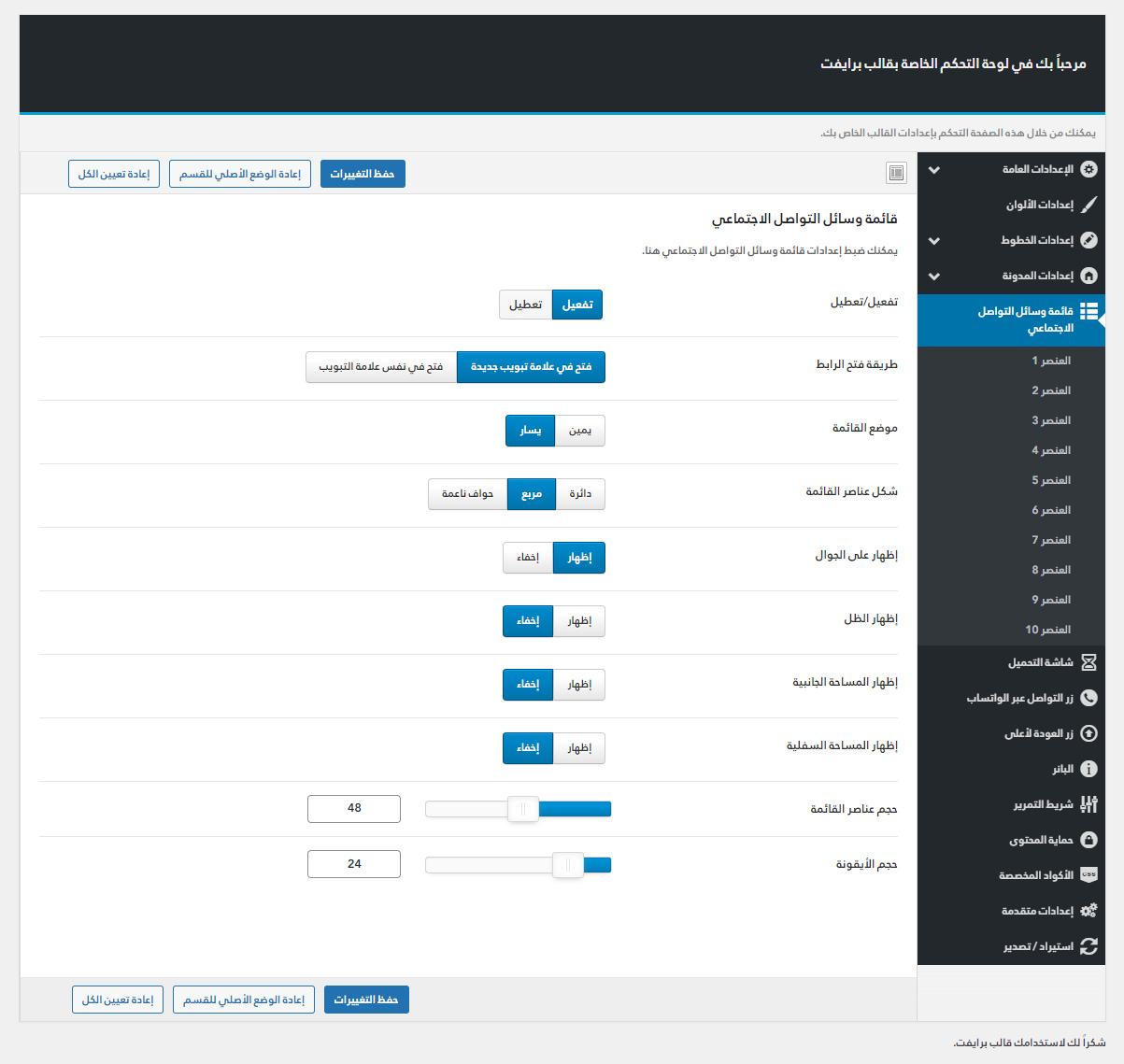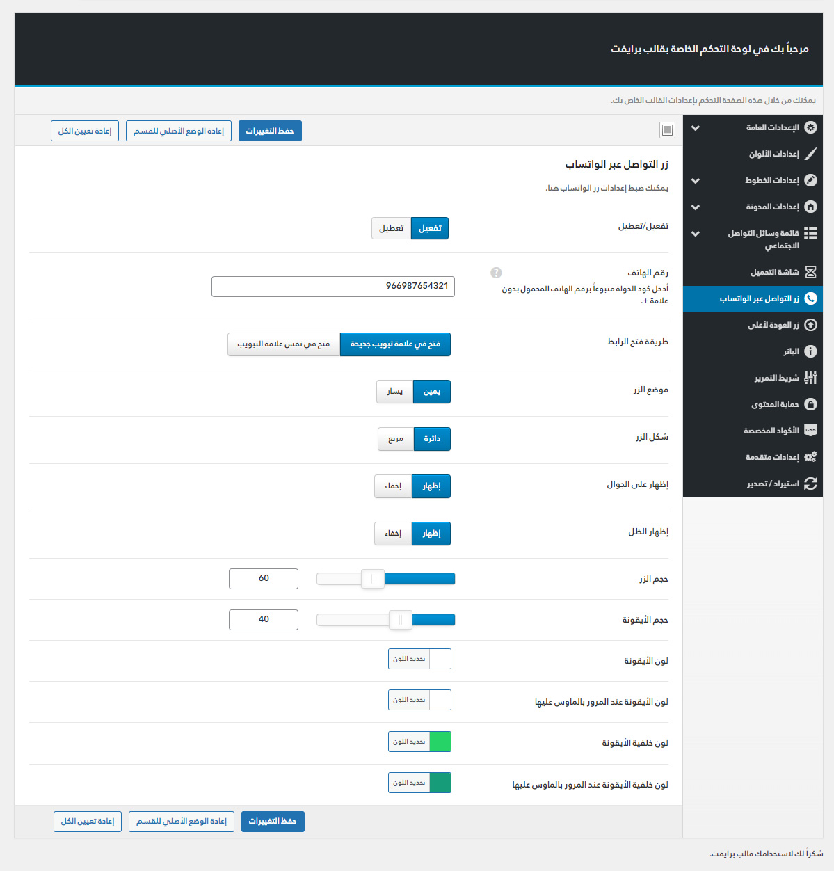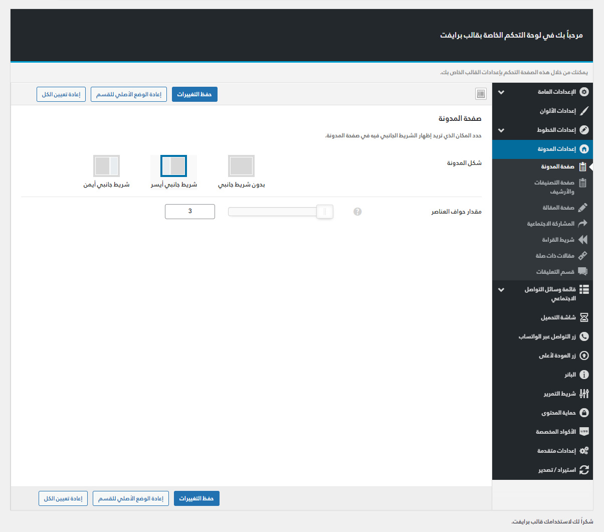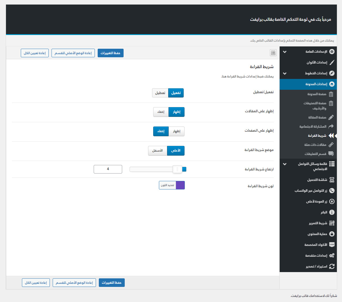 يأتي مع برايفت لوحة تحكم خاصة به غنية بالعديد من الميزات المفيدة لتستطيع تخصيص موقعك كما ترغب.