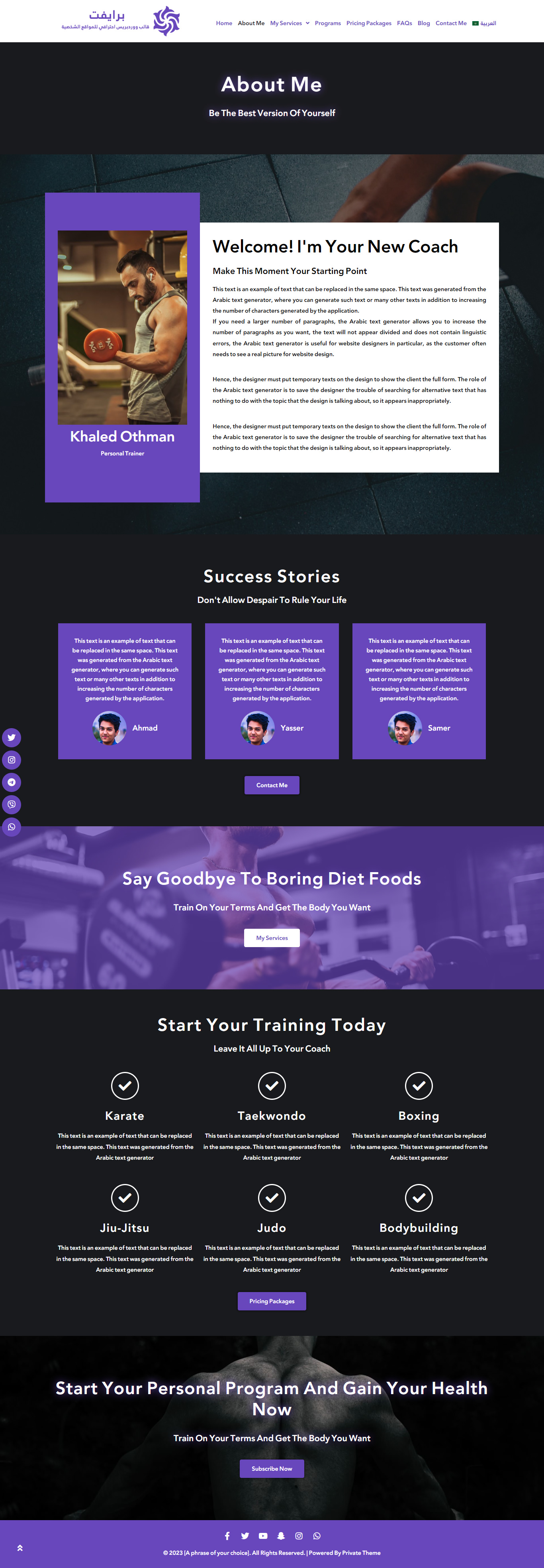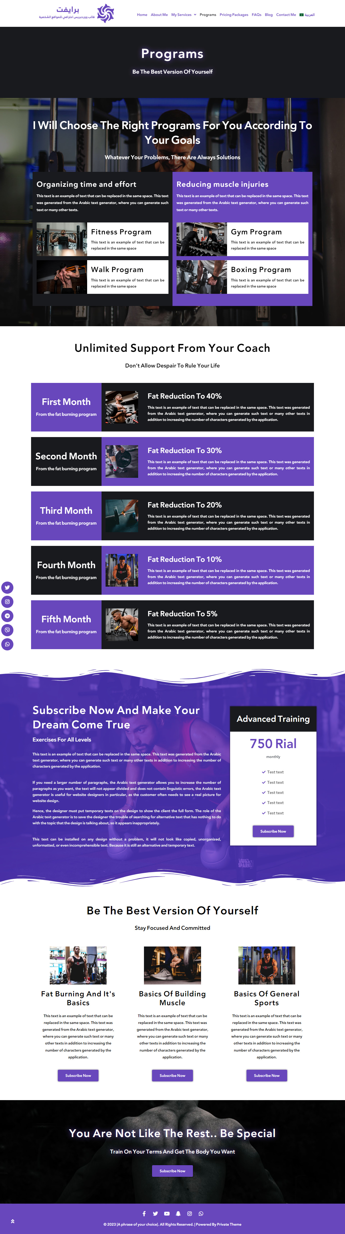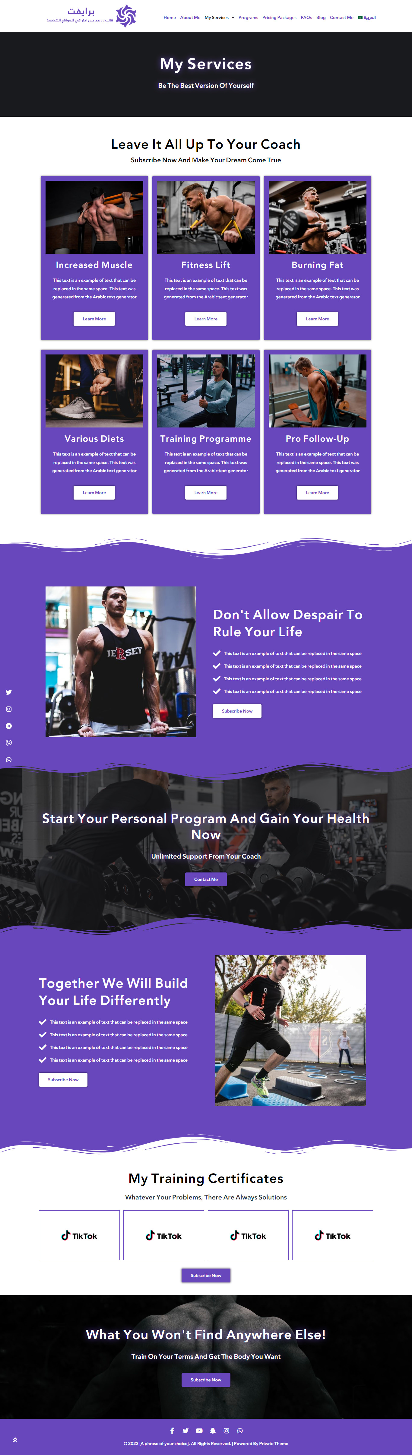 استمتع بتجربة فريدة ومميزة مع قالب برايفت الذي يقدم دعماً كاملاً للغة العربية والإنجليزية مع دعم الاتجاهات RTL وLTR بشكل كامل.