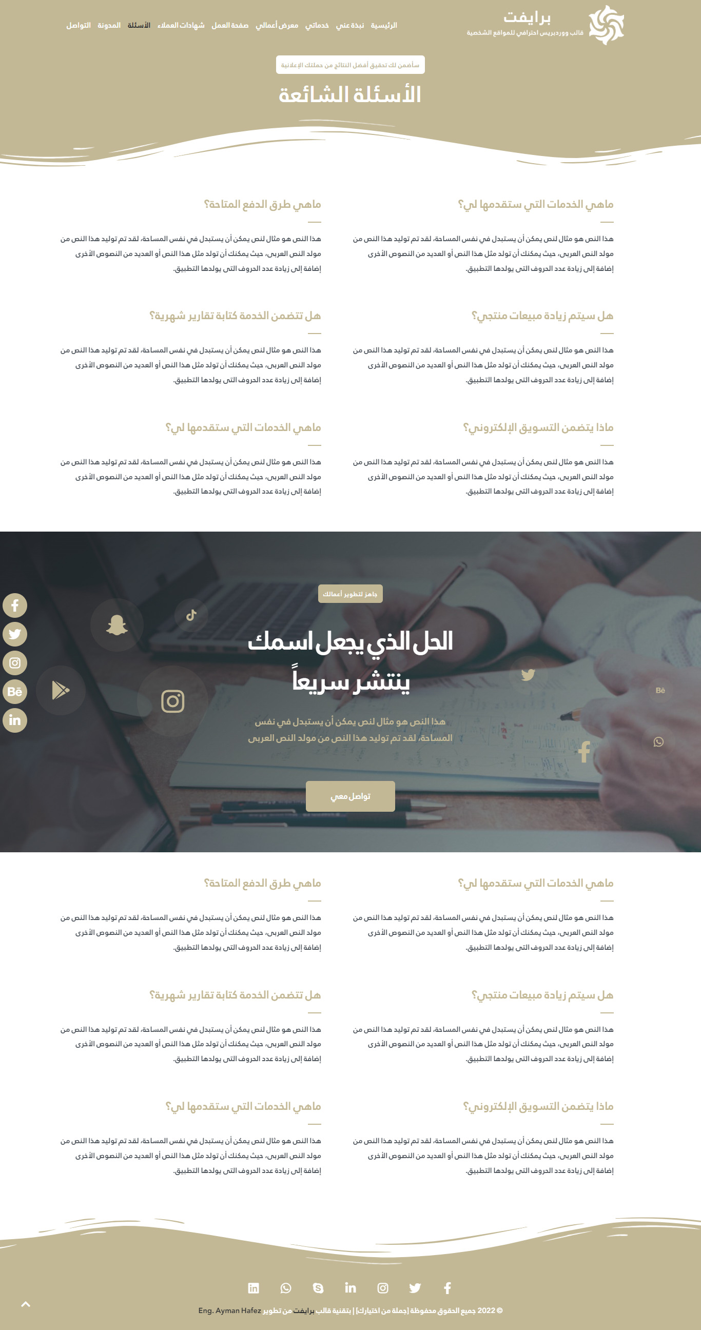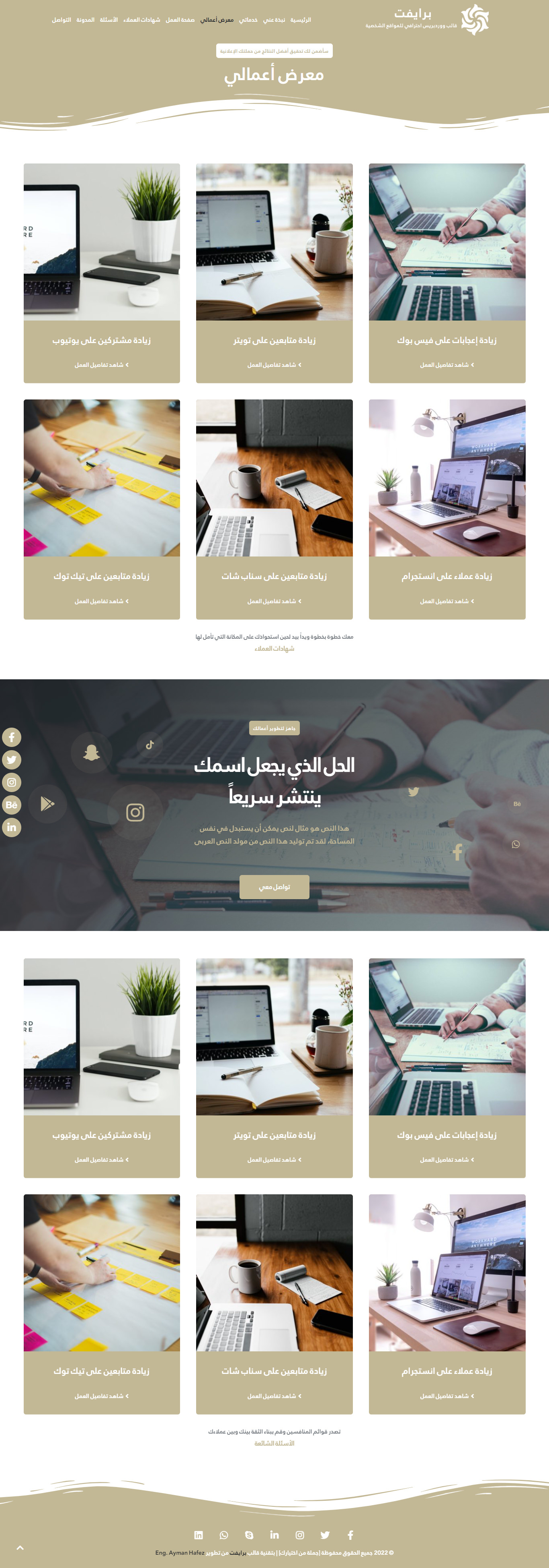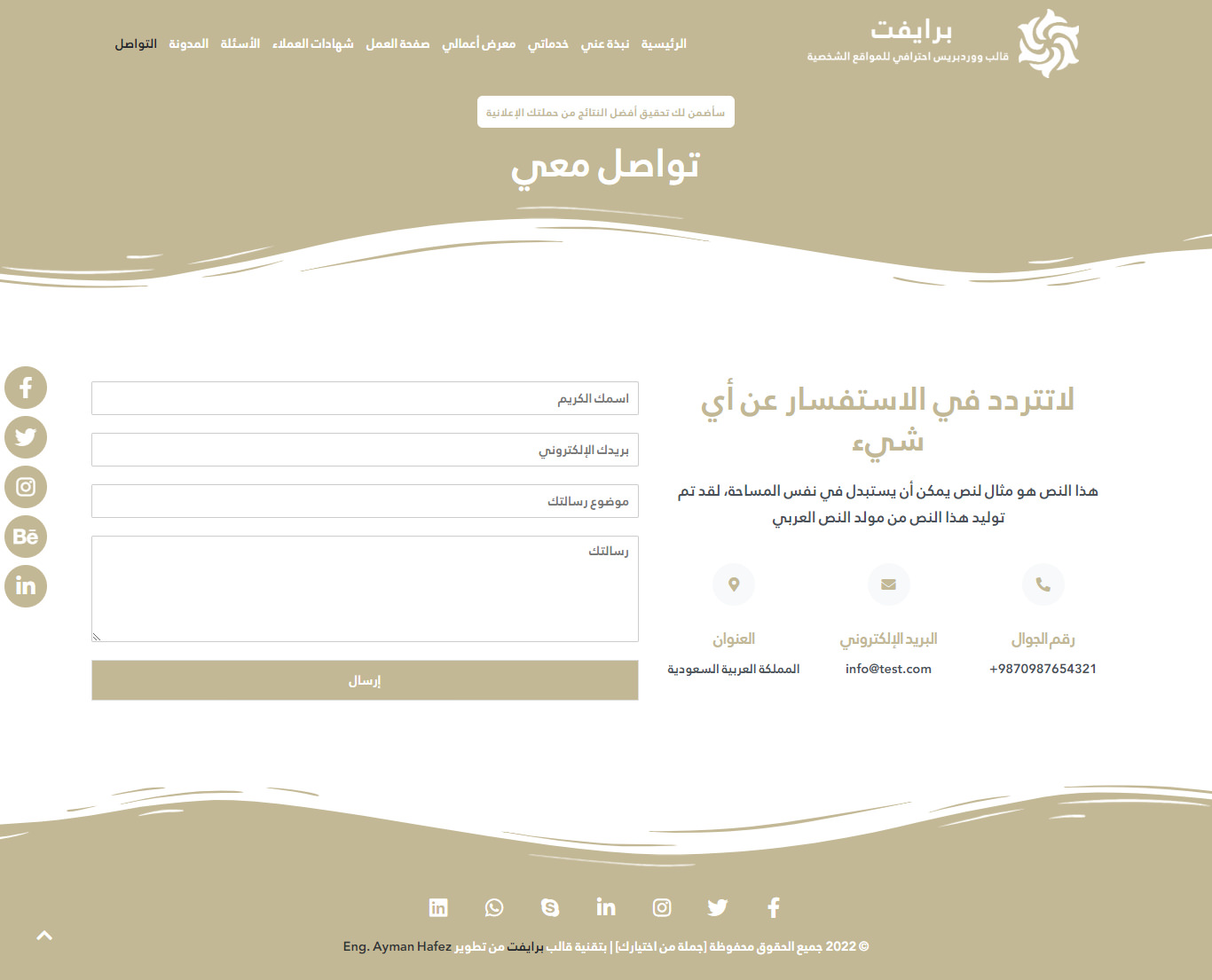 - جميع حقوق التصميم والتطوير محفوظة لموقع ووردبريس العربي وبالتالي لا يمكن نشر العمل في معرض أعمالك بعد استخدام القالب.