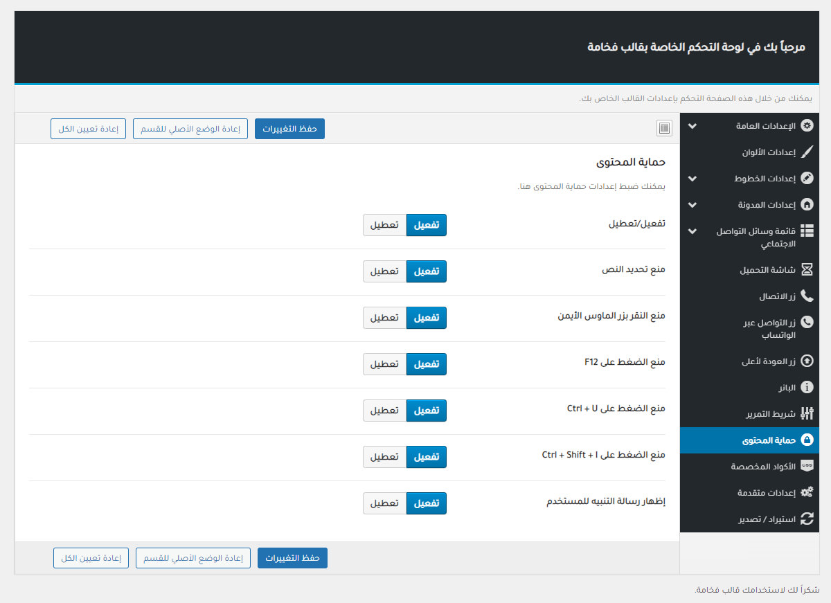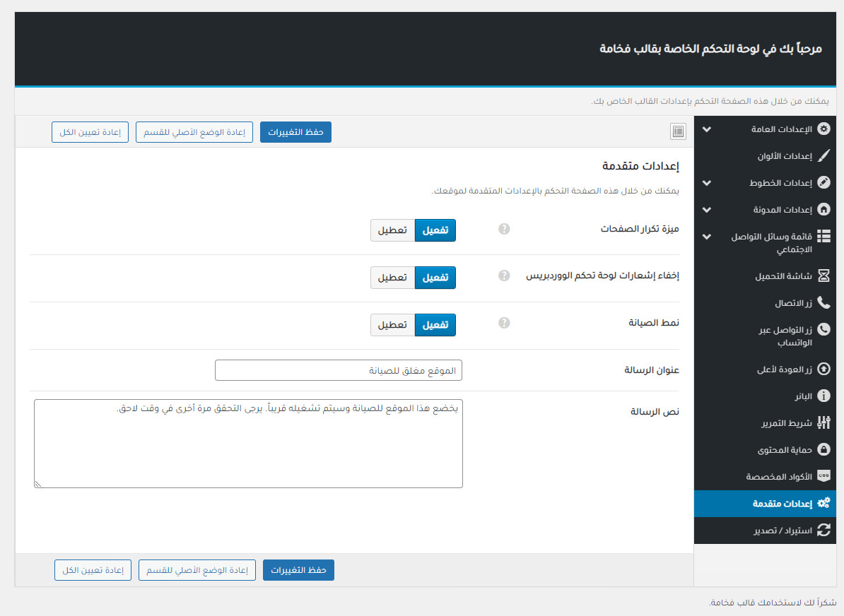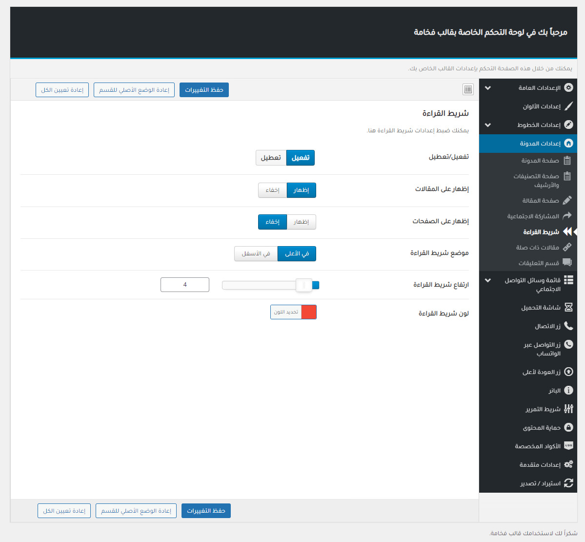 يأتي مع فخامة لوحة تحكم خاصة به غنية بالعديد من الميزات المفيدة لتستطيع تخصيص موقعك كما ترغب.