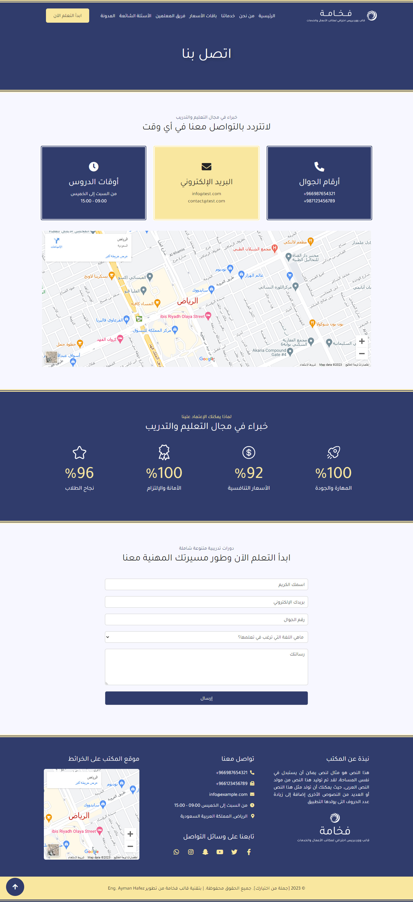 - هذا القالب لا يستخدم إضافة Elementor Pro ولا يتطلب شراءها وبالتالي لا يتم دعم أي جهة أجنبية عند استخدامه.
