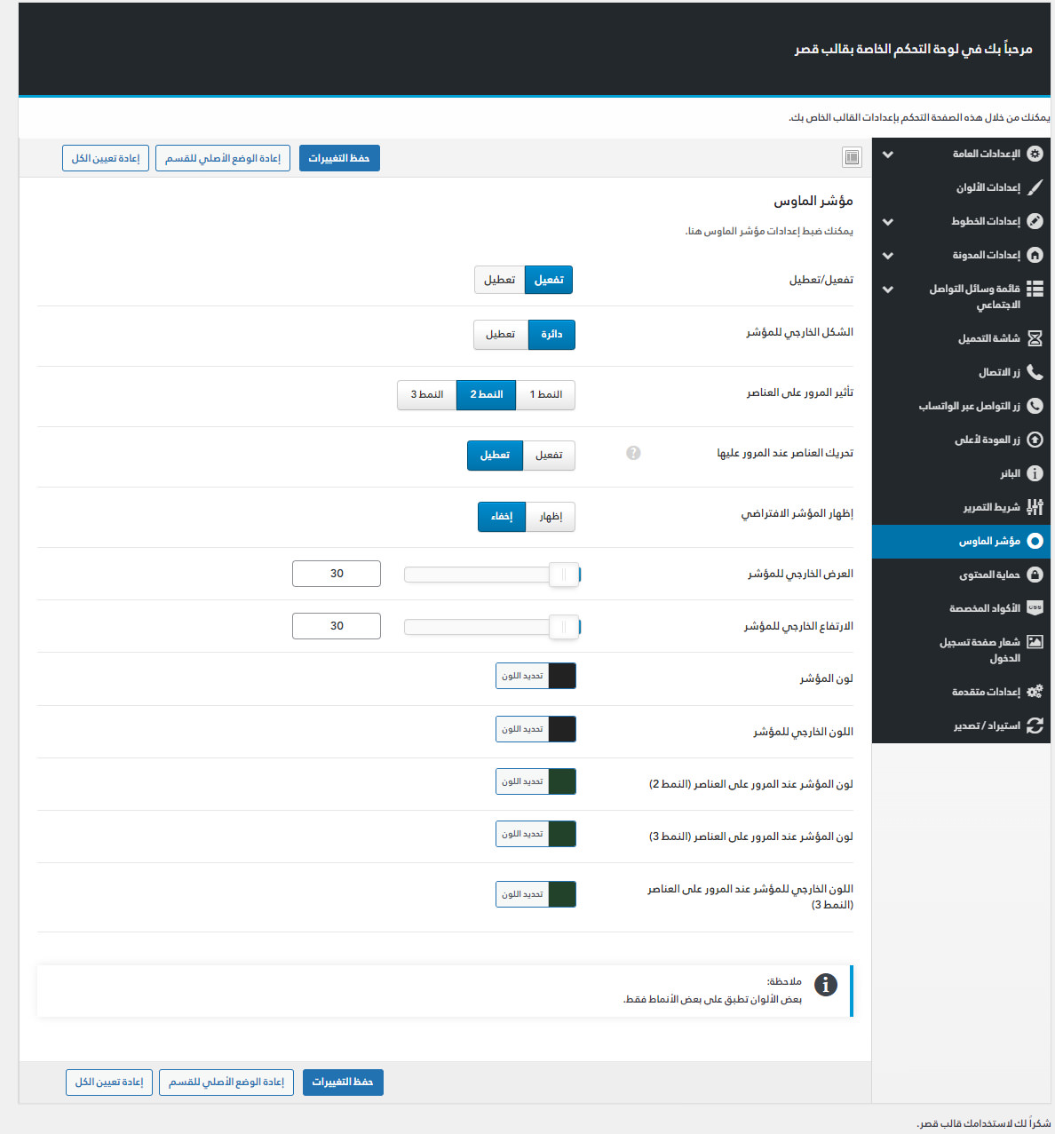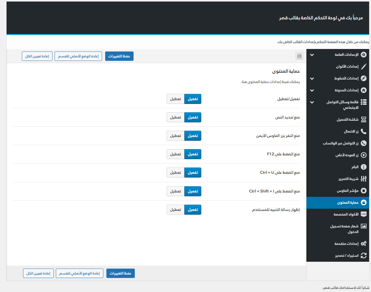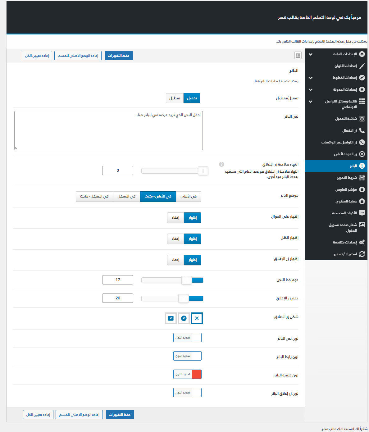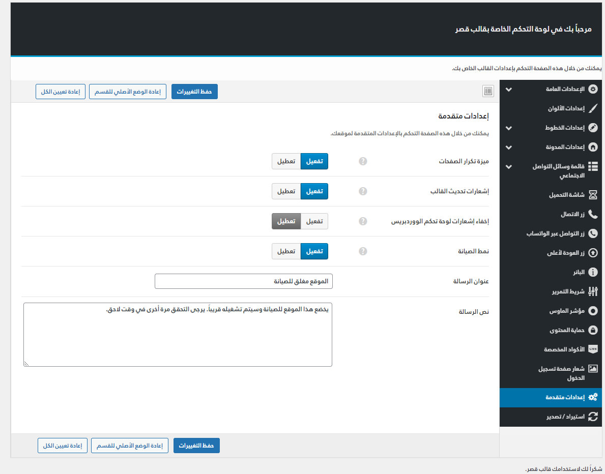 يأتي مع قصر لوحة تحكم خاصة به غنية بالعديد من الميزات المفيدة لتستطيع تخصيص موقعك كما ترغب.