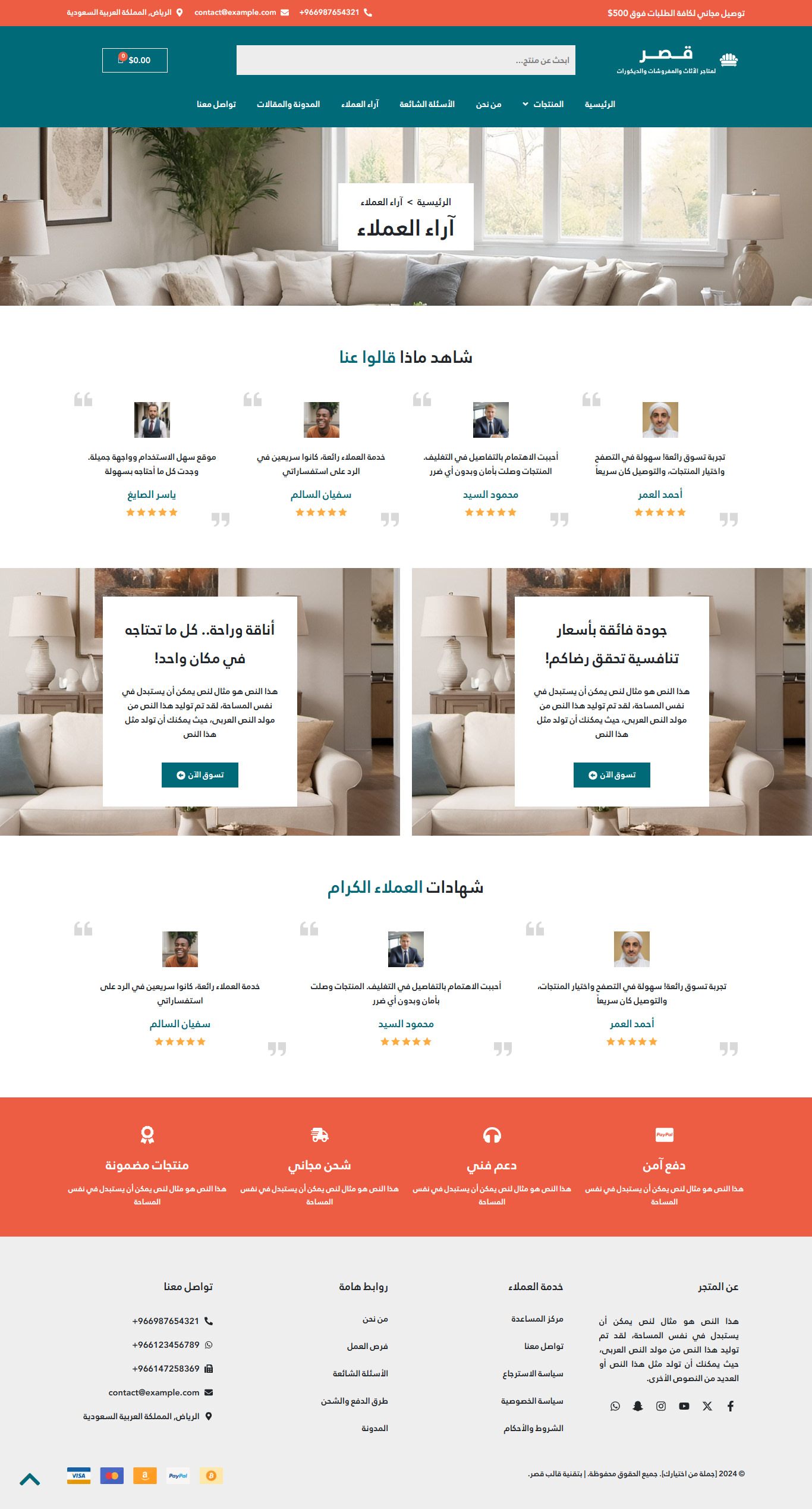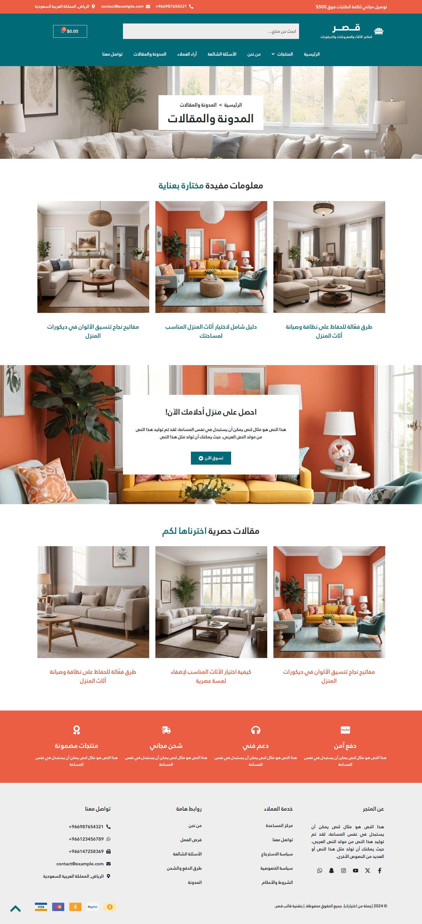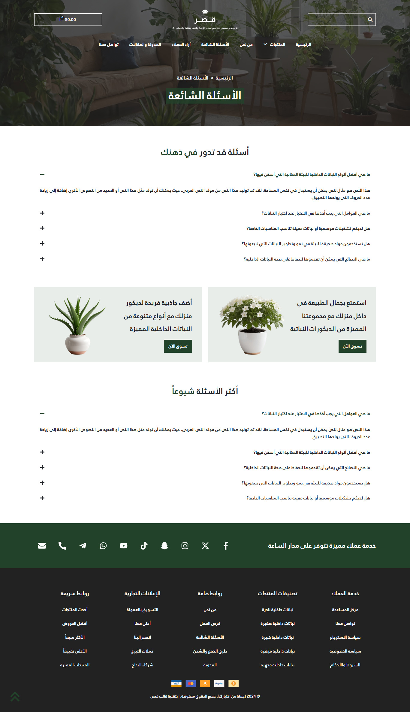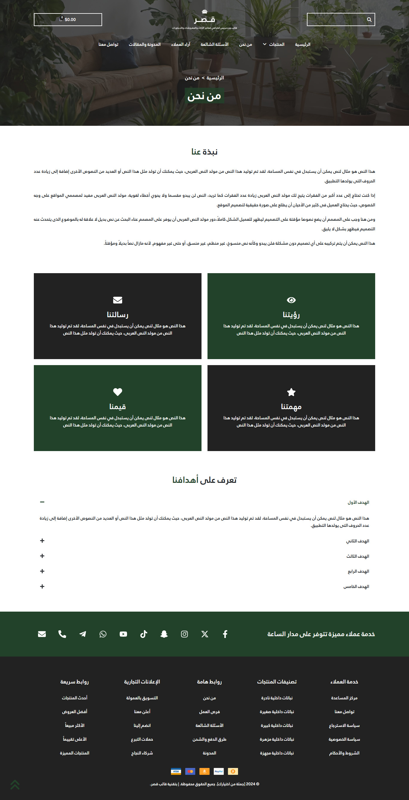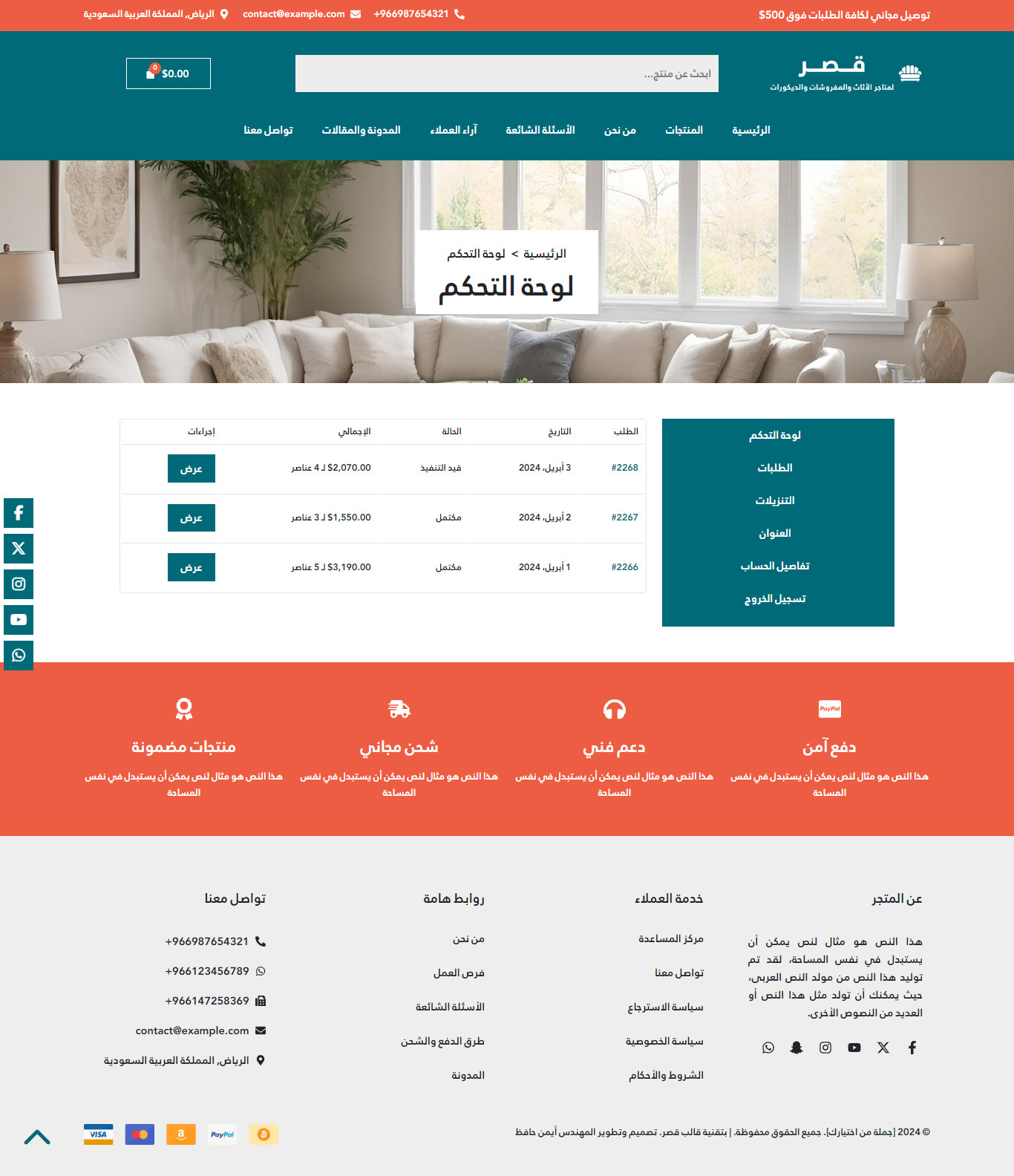 قالب قصر هو قالب ووردبريس عربي احترافي متطور يساعدك عبر نماذج حديثة ومميزة في بناء مختلف أنواع المتاجر الإلكترونية بسهولة مثل متاجر أثاث ومفروشات المنازل والمكاتب بمنتجاتها المتنوعة من كنب وكراسي وطاولات وديكورات النباتات الداخلية بمختلف أنواعها.