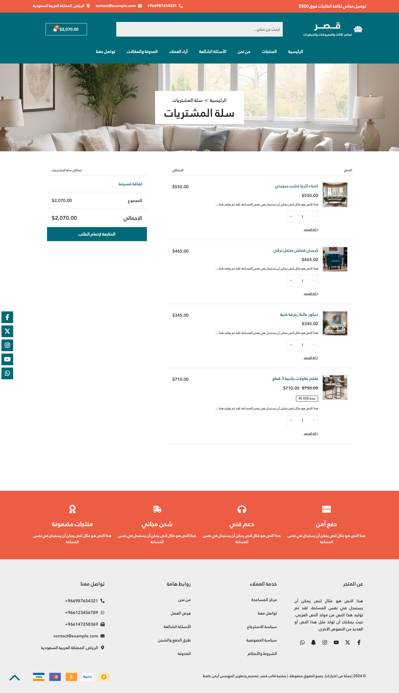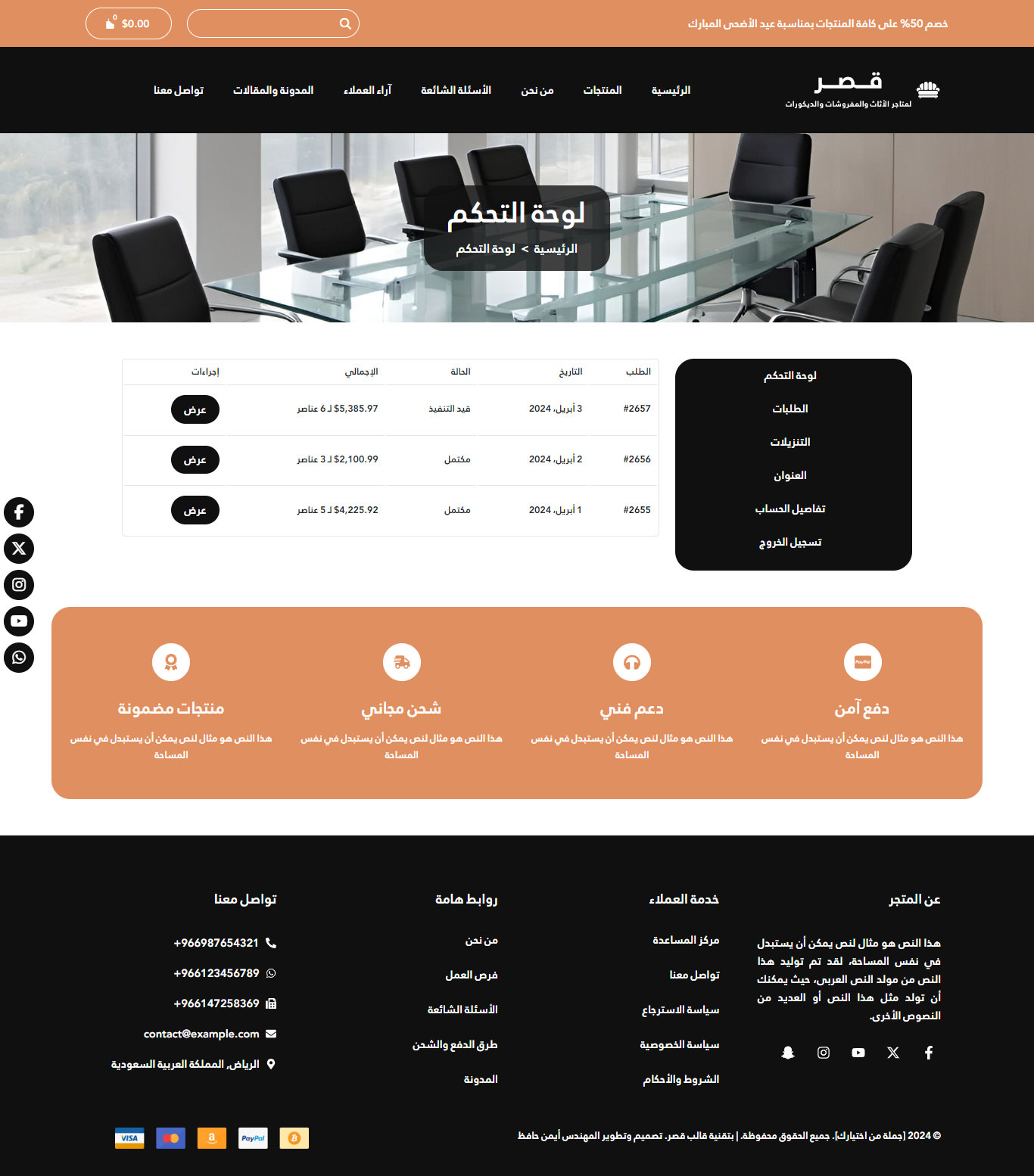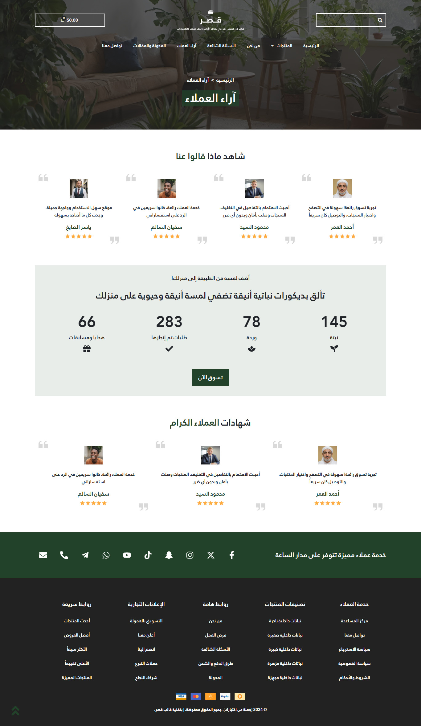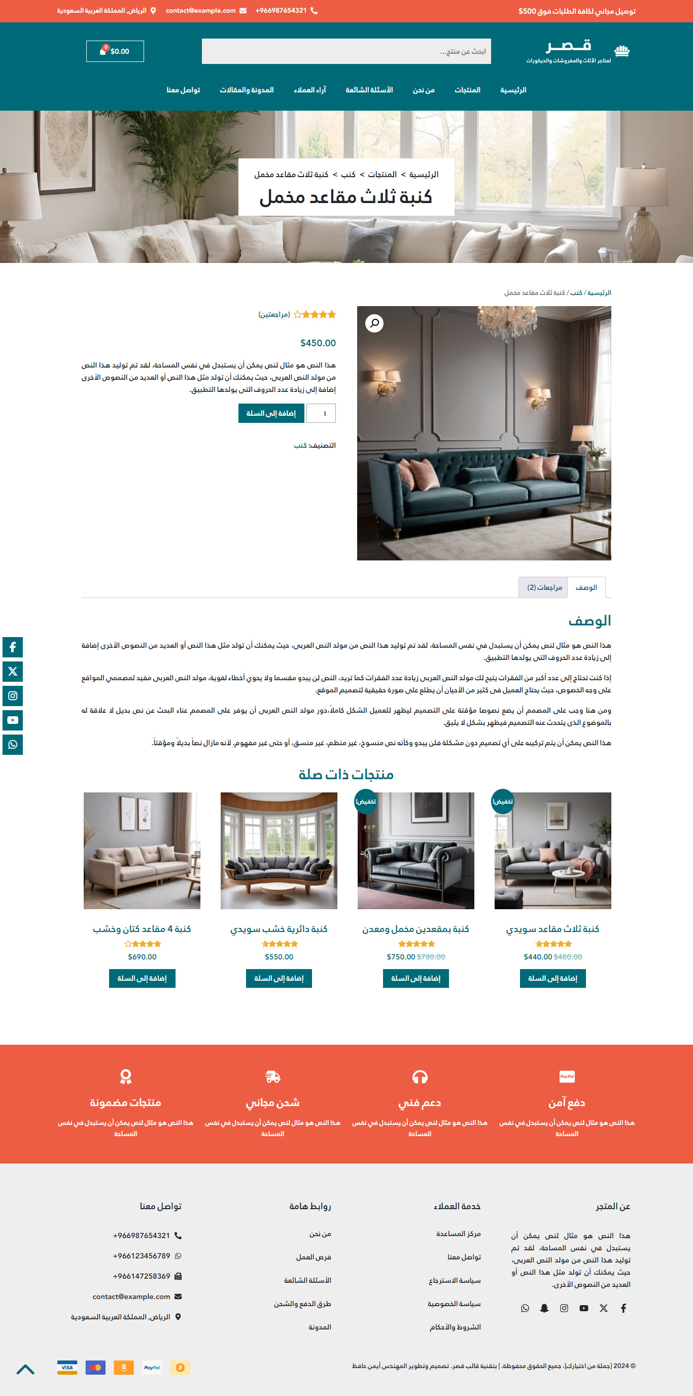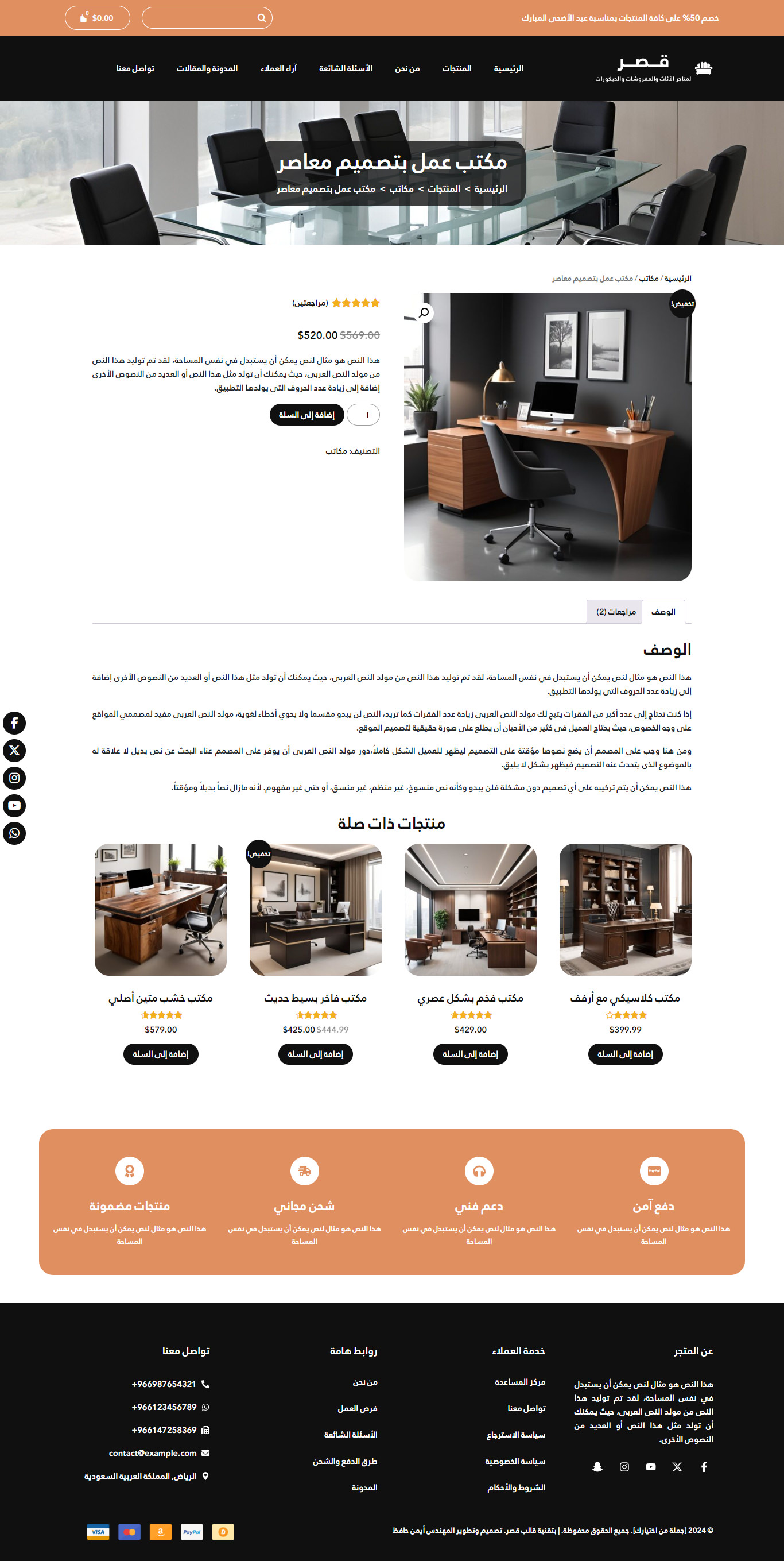 قالب قصر هو قالب ووردبريس عربي احترافي متطور يساعدك عبر نماذج حديثة ومميزة في بناء مختلف أنواع المتاجر الإلكترونية بسهولة مثل متاجر أثاث ومفروشات المنازل والمكاتب بمنتجاتها المتنوعة من كنب وكراسي وطاولات وديكورات النباتات الداخلية بمختلف أنواعها.