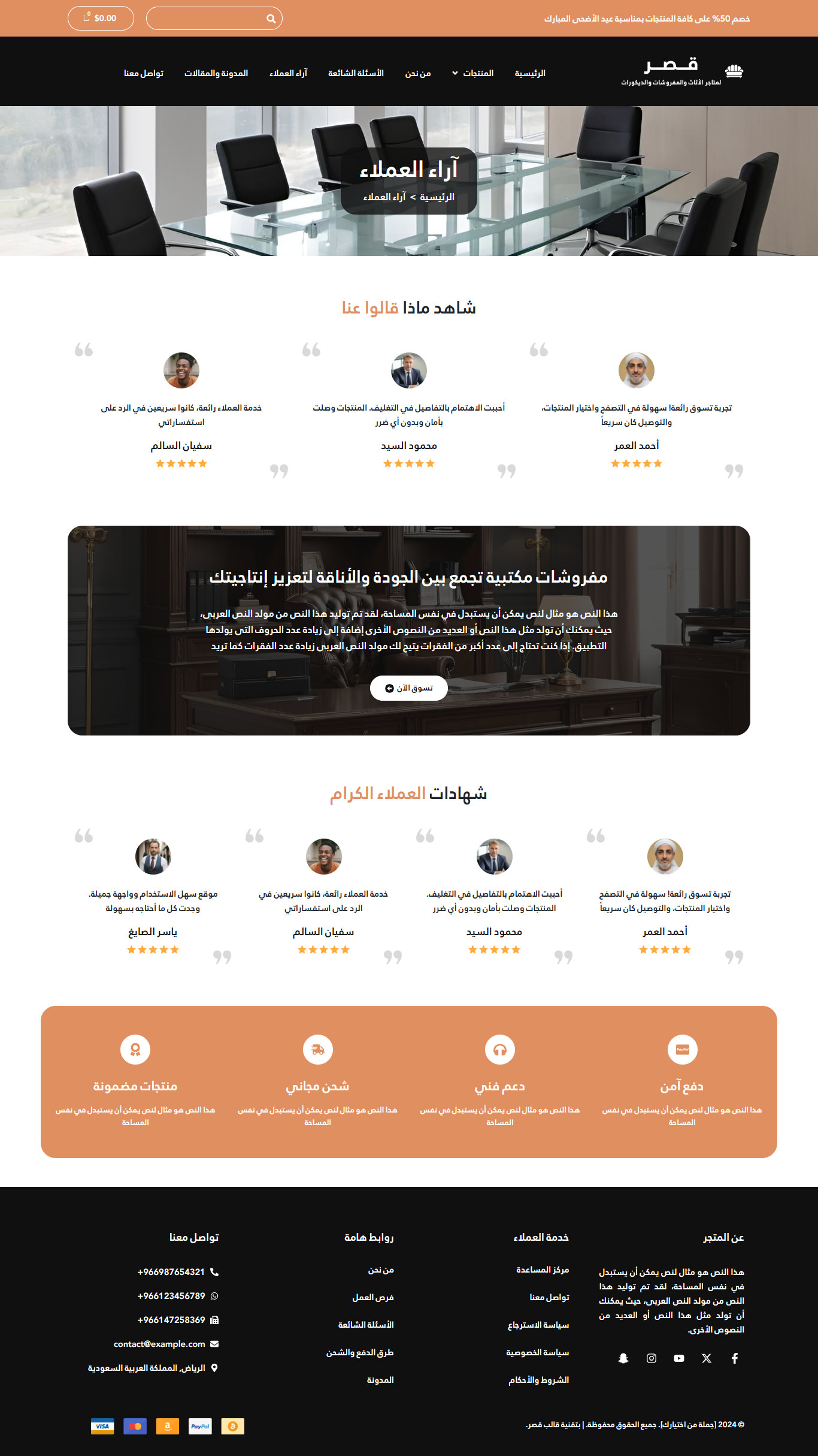 يتميز قالب قصر بتصميم أنيق وحديث وتم تصميم صفحاته وفق أسس علمية قائمة على تجربة المستخدم.