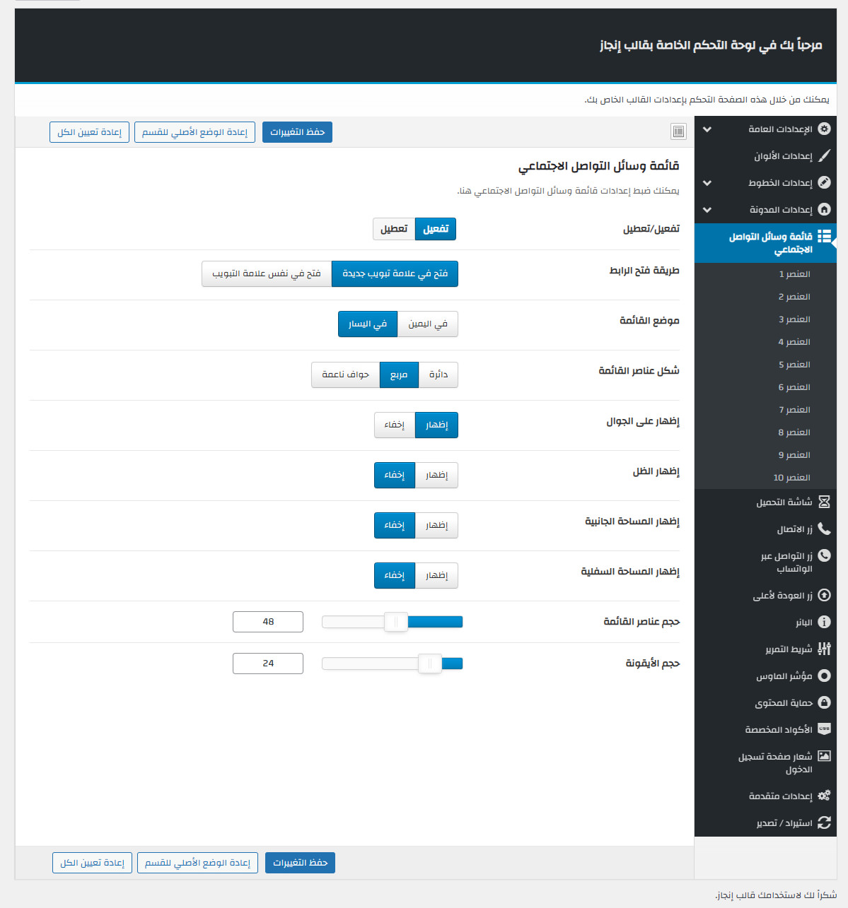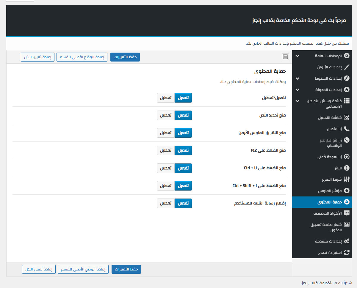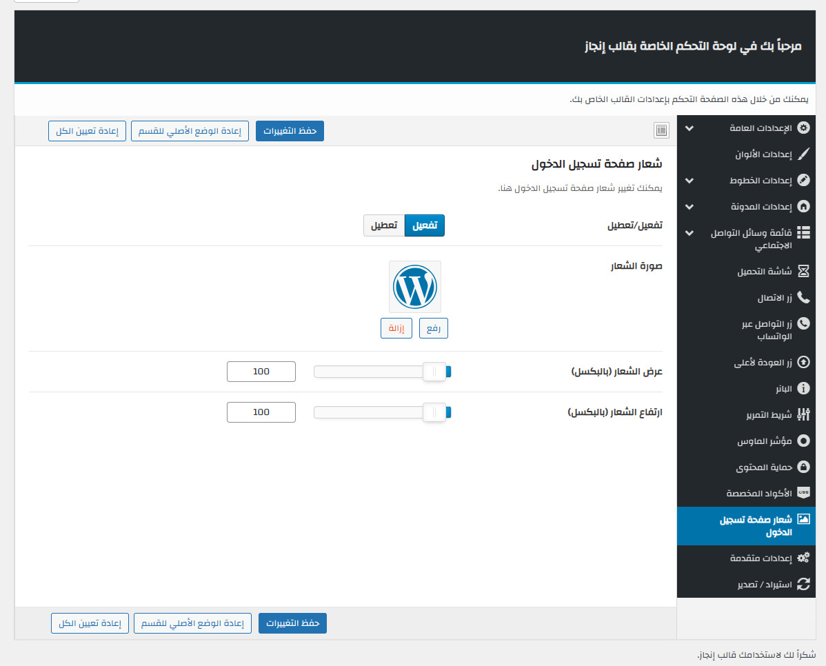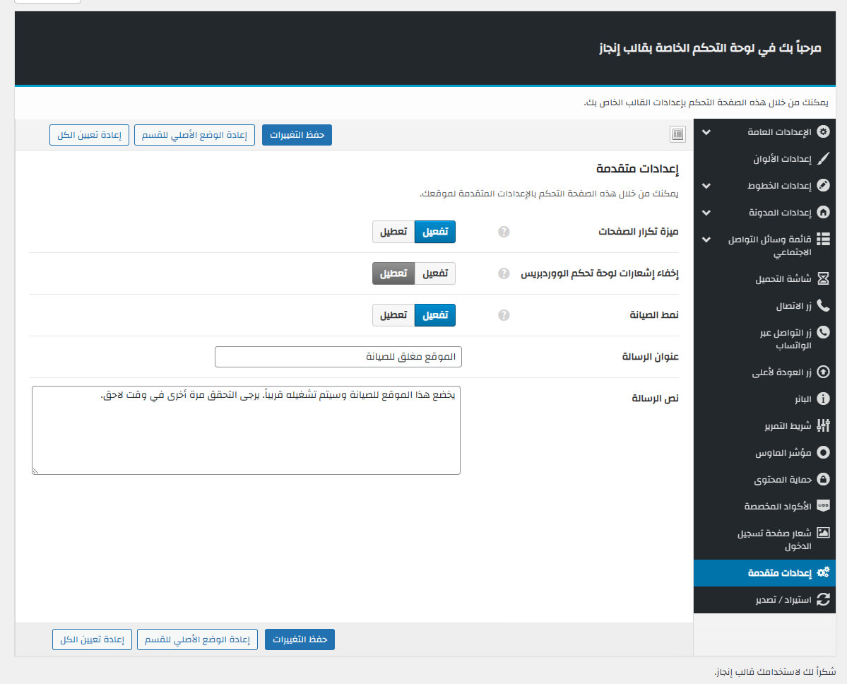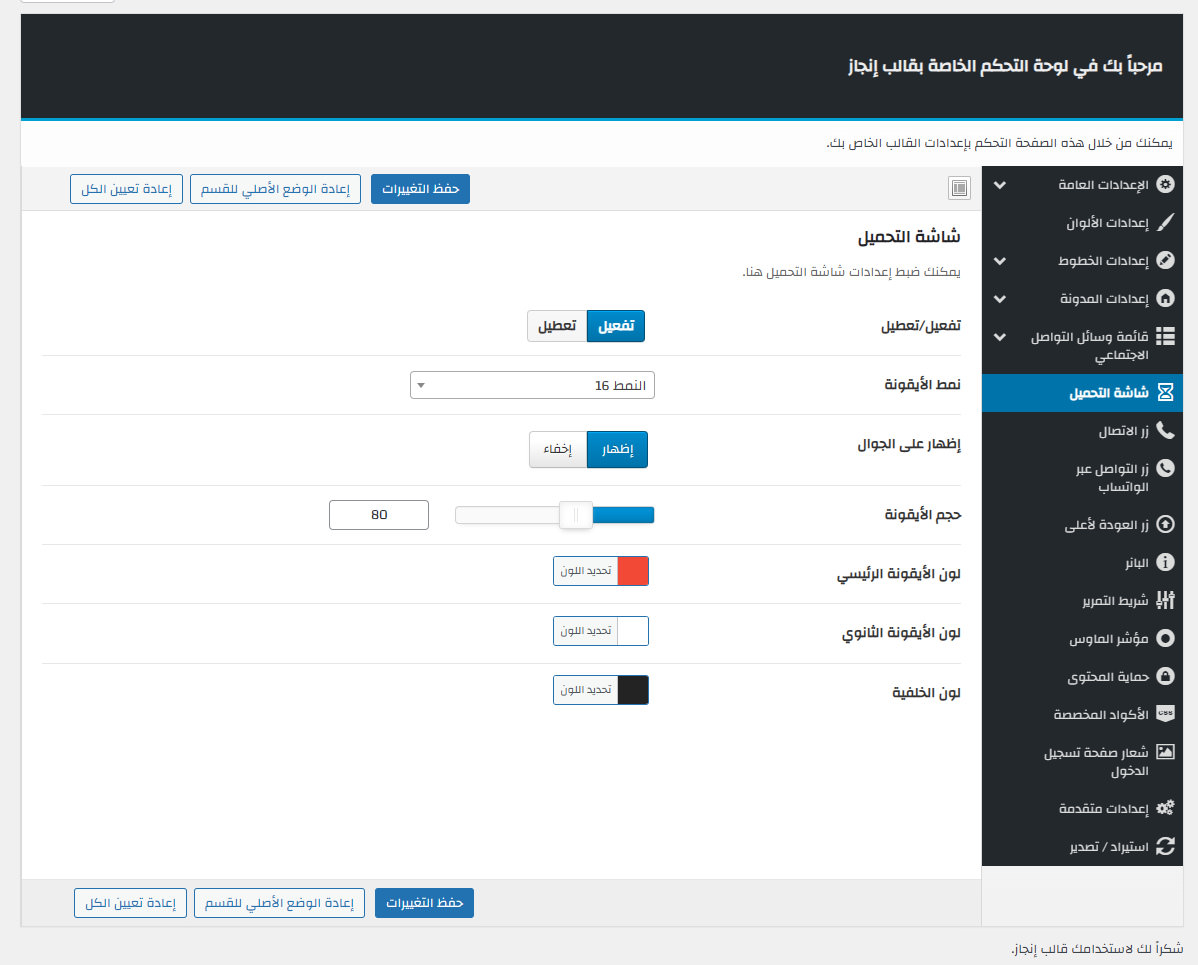 يأتي مع إنجاز لوحة تحكم خاصة به غنية بالعديد من الميزات المفيدة لتستطيع تخصيص موقعك كما ترغب.