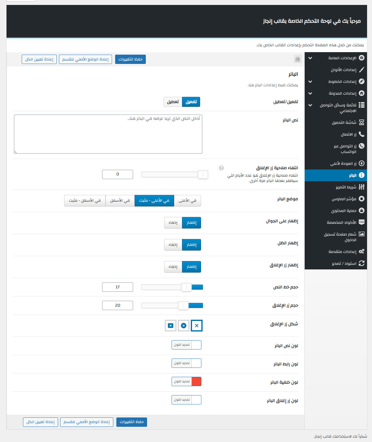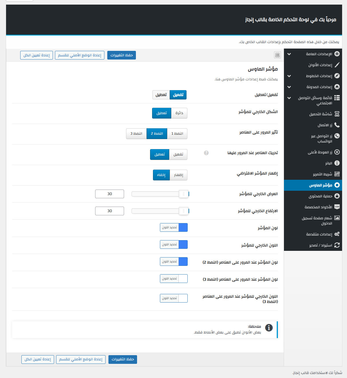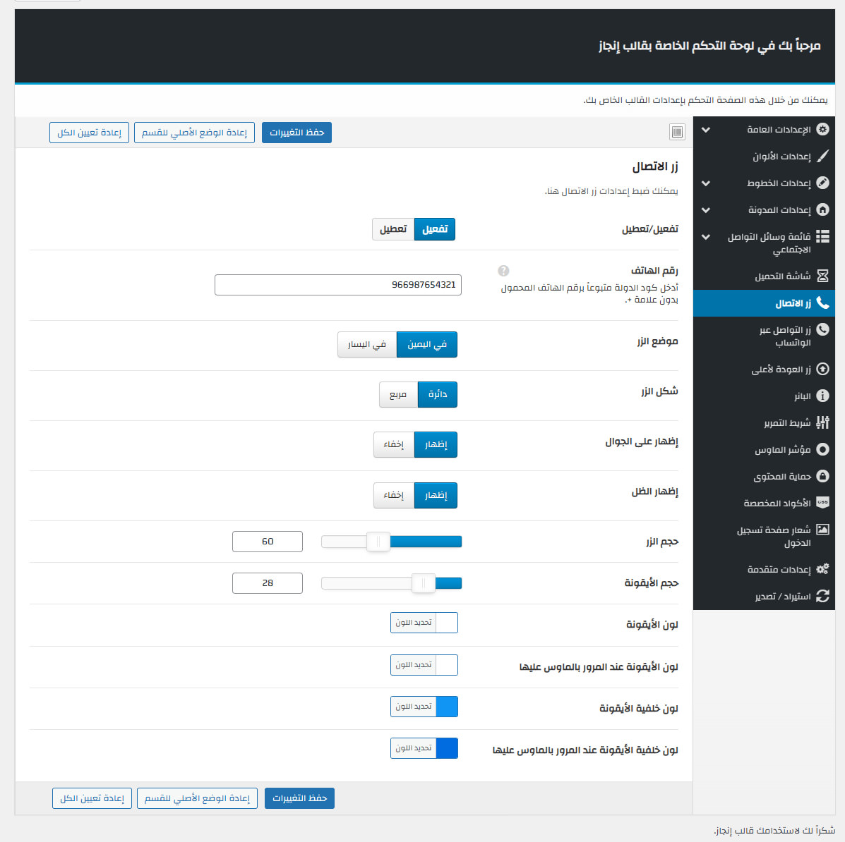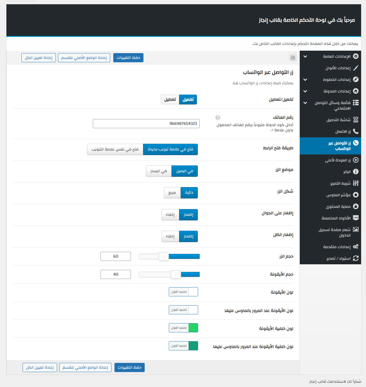 يأتي مع إنجاز لوحة تحكم خاصة به غنية بالعديد من الميزات المفيدة لتستطيع تخصيص موقعك كما ترغب.