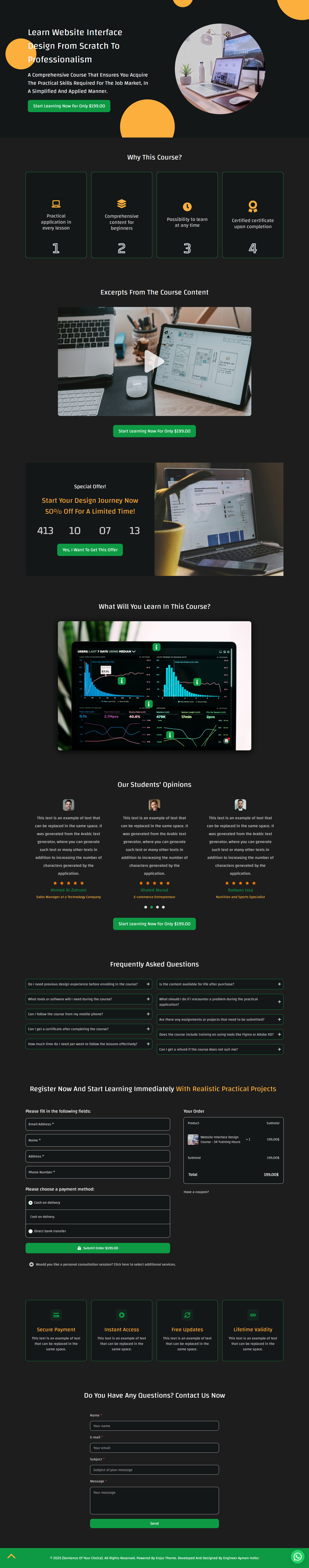 نموذج صفحة لبيع دورة تعليمية (باللغتين العربية والإنجليزية)