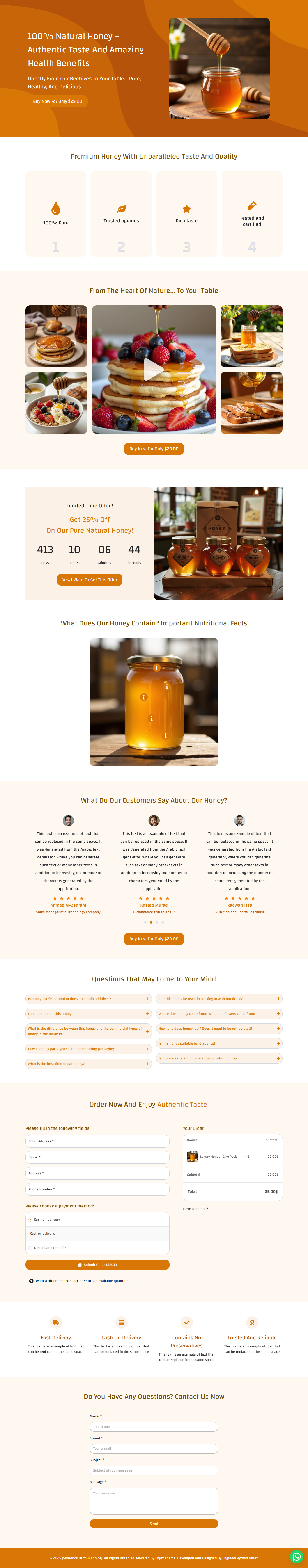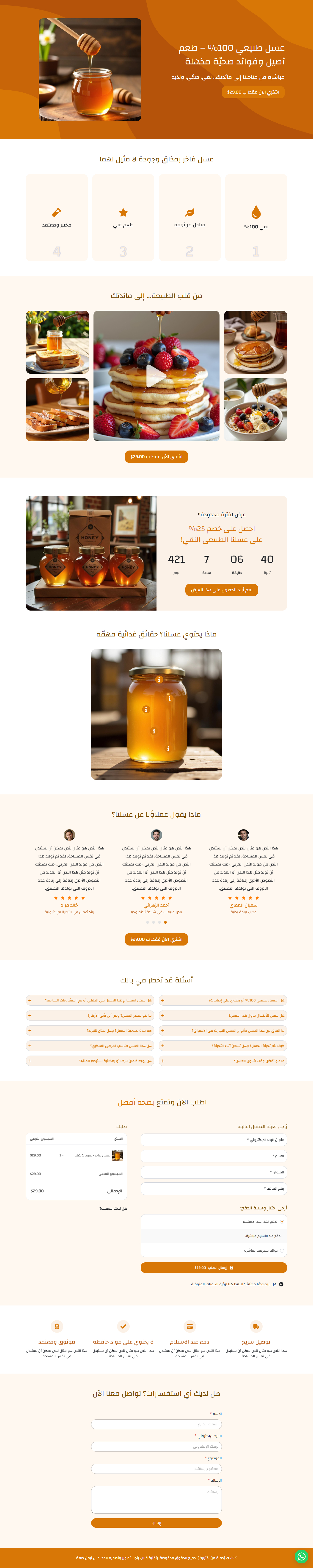 نموذج صفحة لبيع عسل فاخر (باللغتين العربية والإنجليزية)