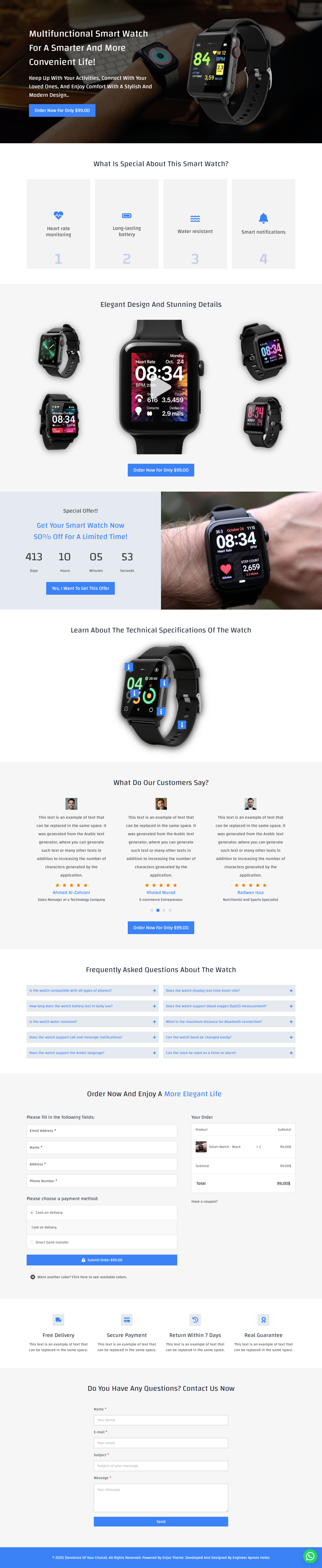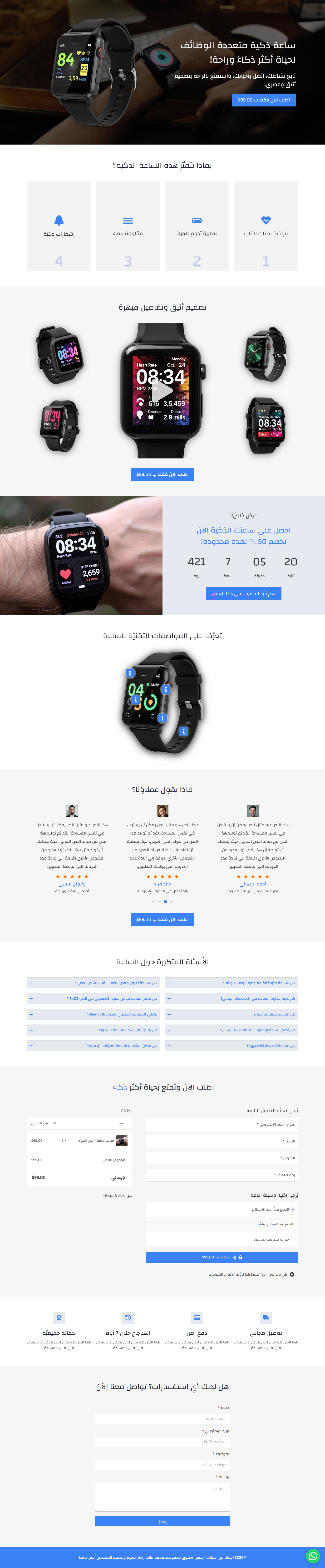 نموذج صفحة لبيع ساعة ذكية (باللغتين العربية والإنجليزية)