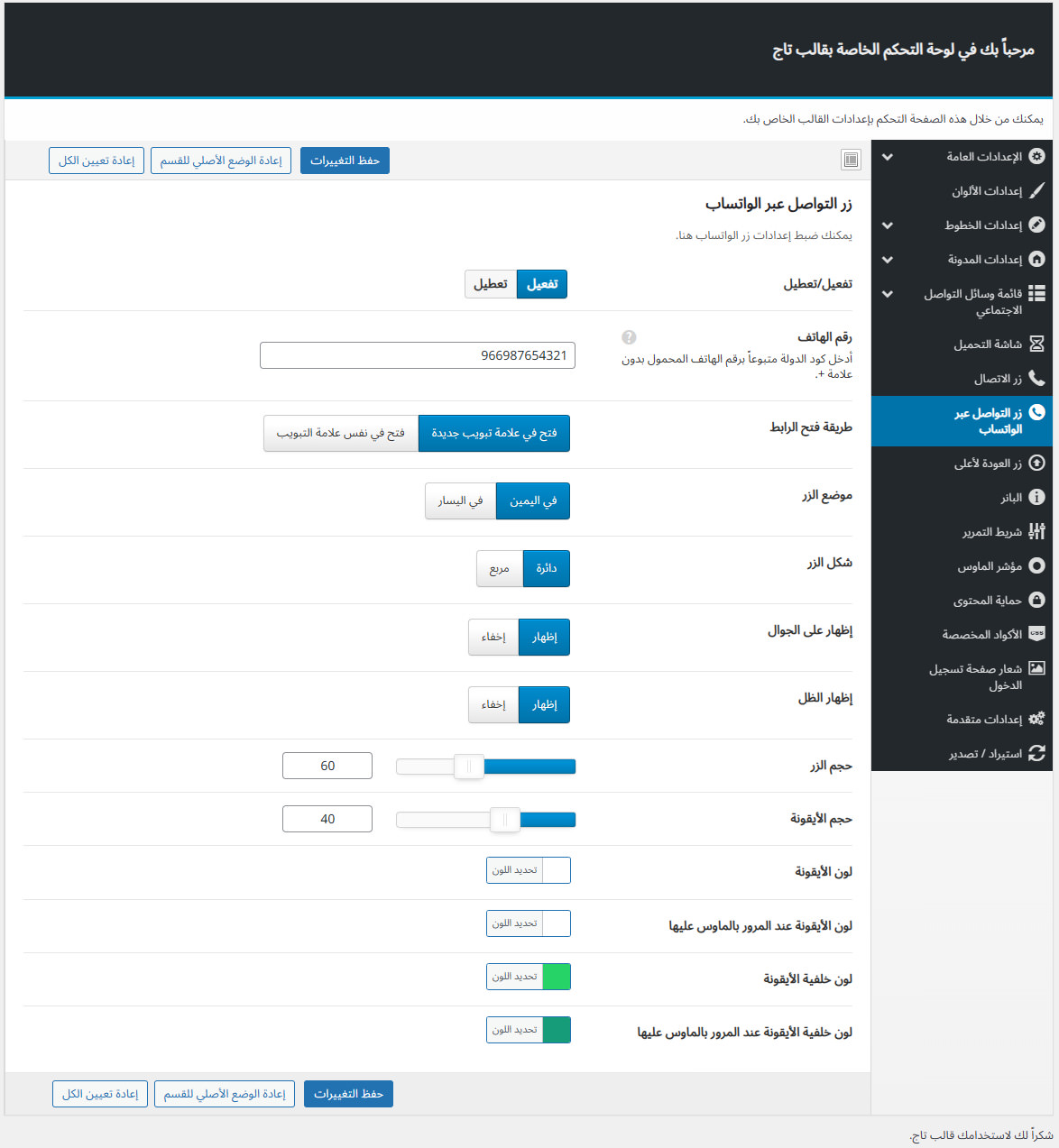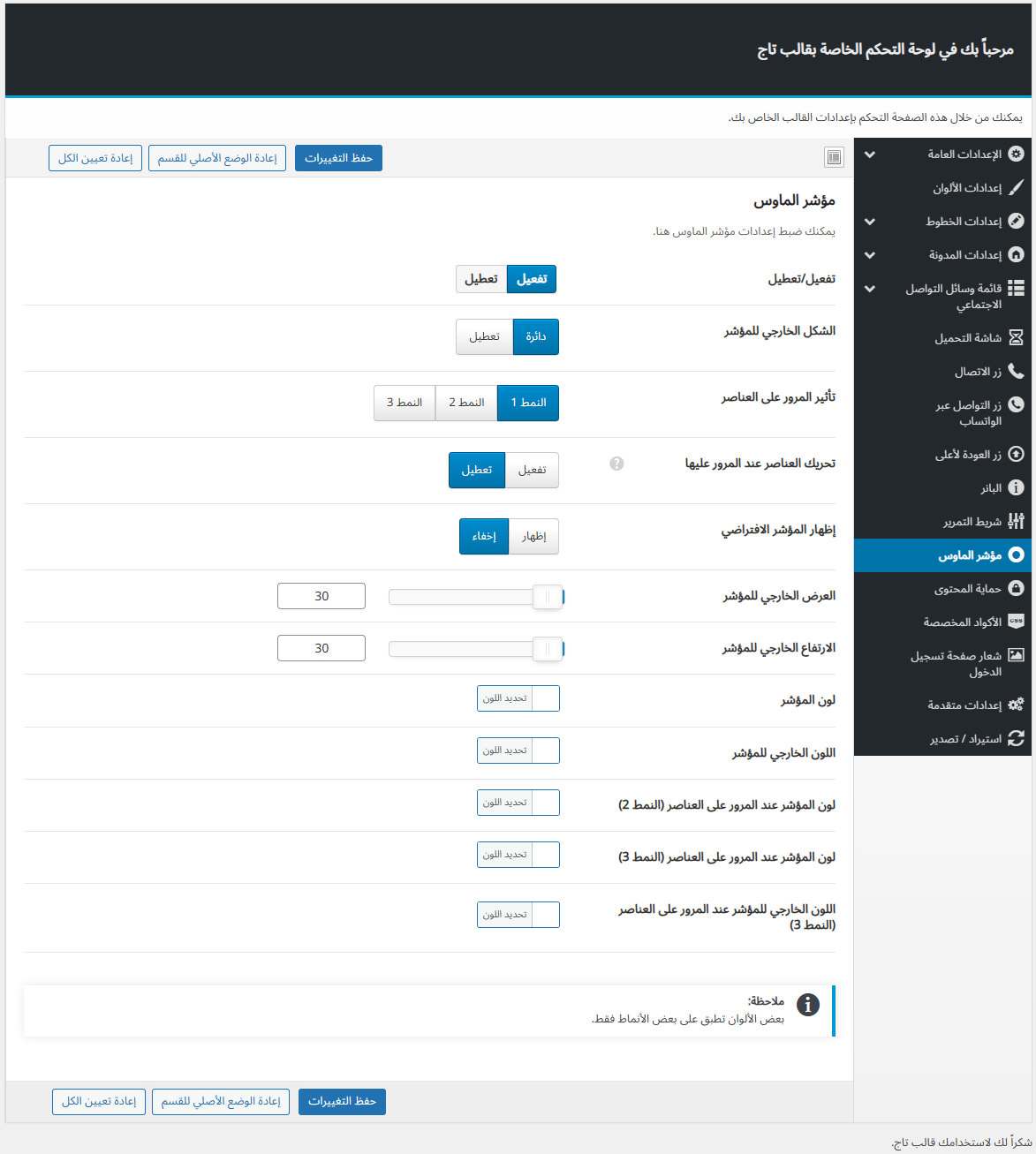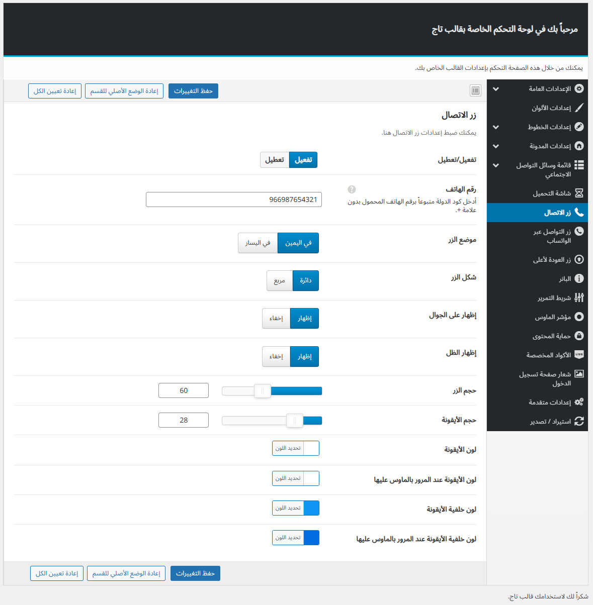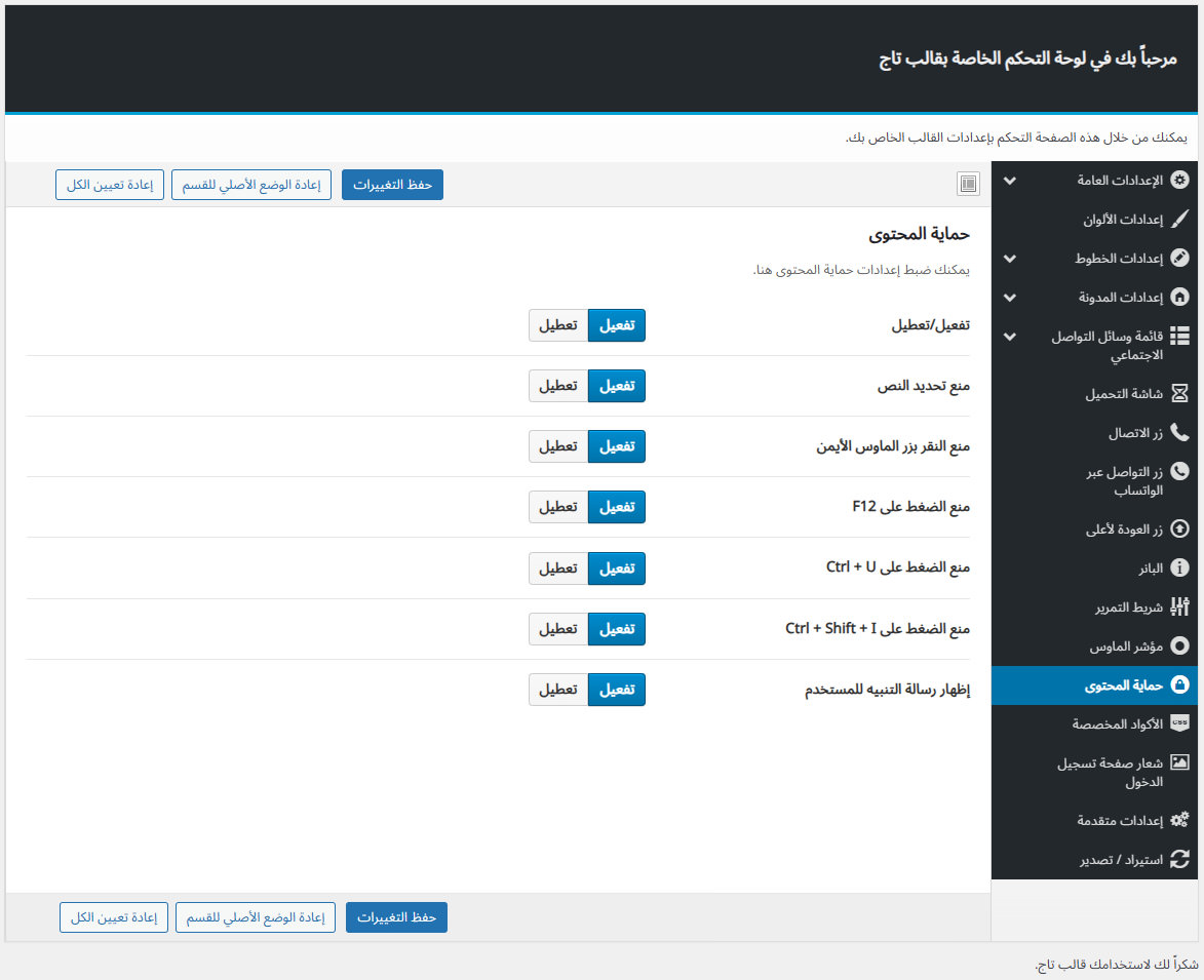 يأتي مع تاج لوحة تحكم خاصة به غنية بالعديد من الميزات المفيدة لتستطيع تخصيص موقعك كما ترغب.