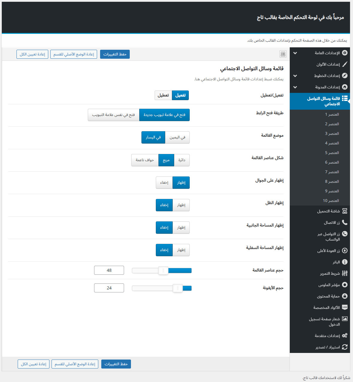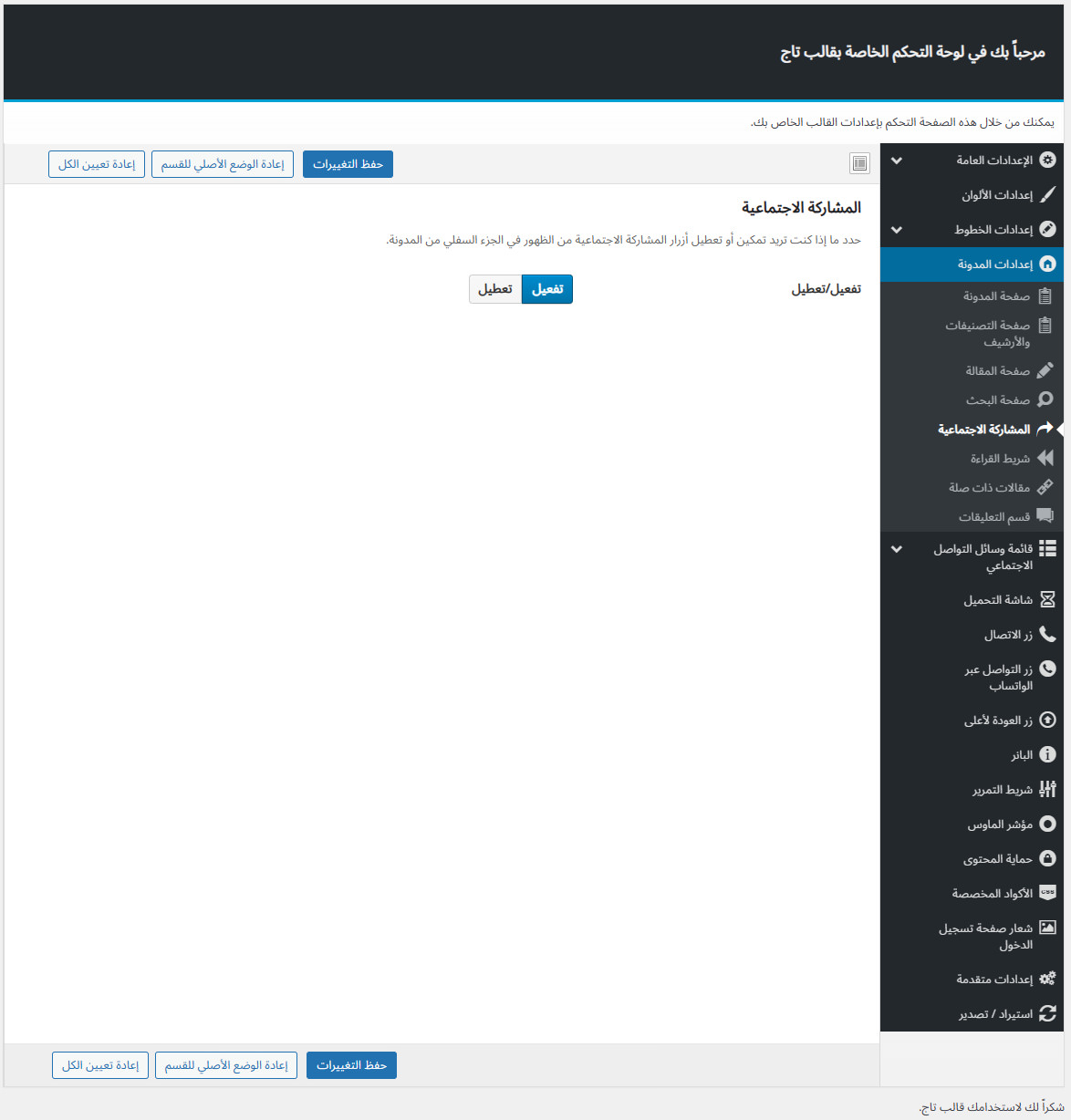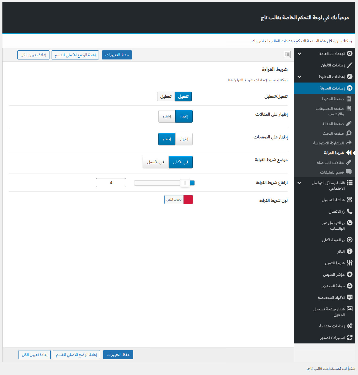 يأتي مع تاج لوحة تحكم خاصة به غنية بالعديد من الميزات المفيدة لتستطيع تخصيص موقعك كما ترغب.