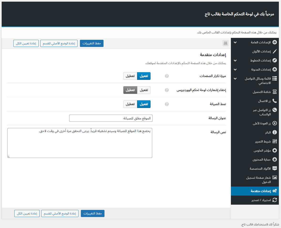 بضغطة زر واحدة تستطيع استيراد الديمو ليصبح موقعك مثل النماذج المعروضة في موقع القالب تماماً.