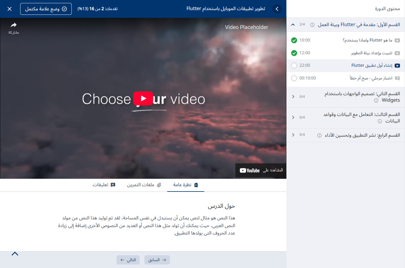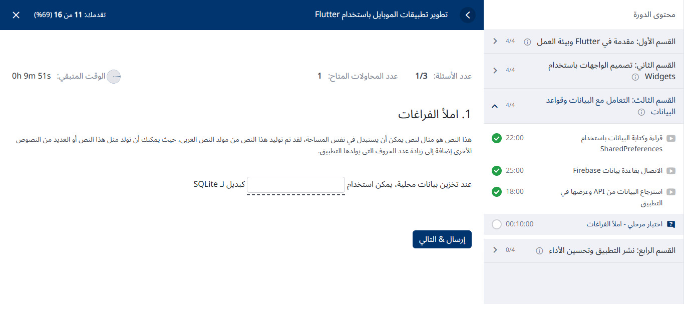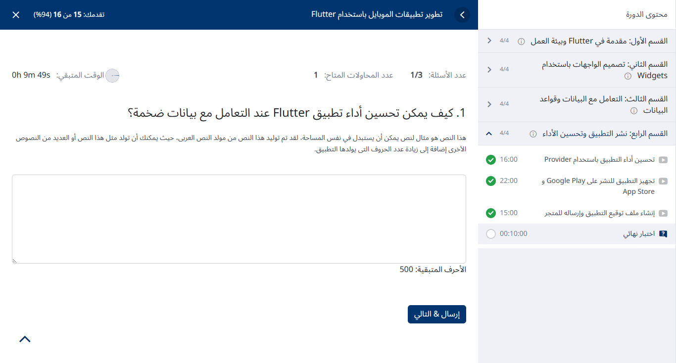 لوحة تحكم الطالب: