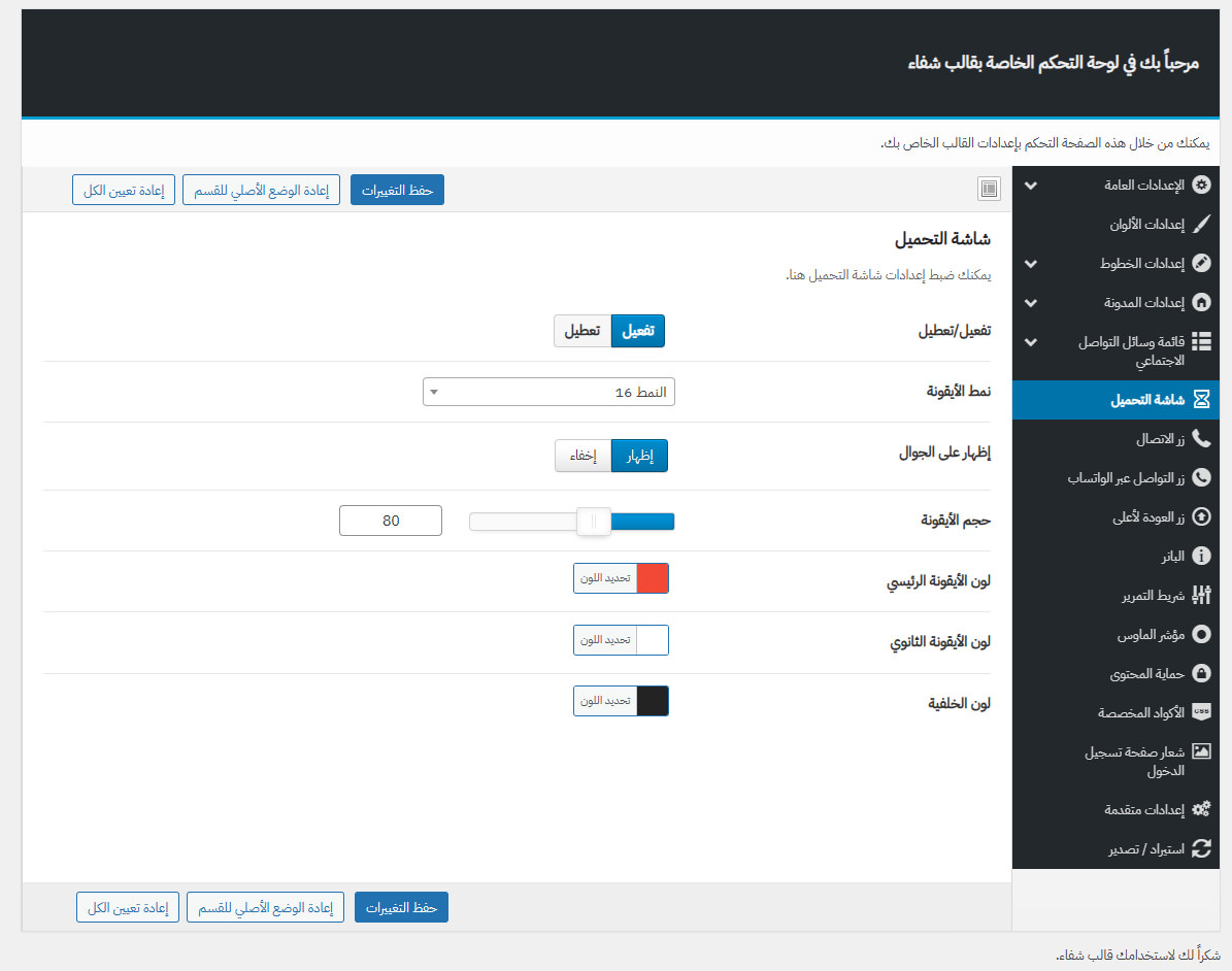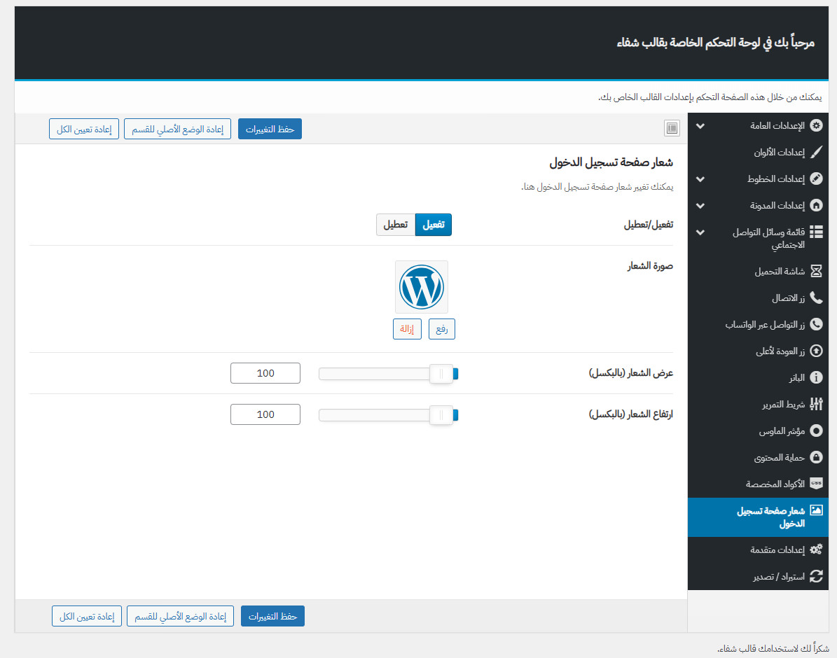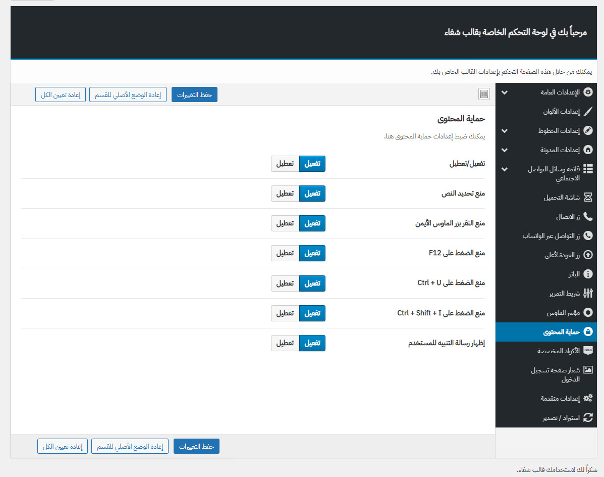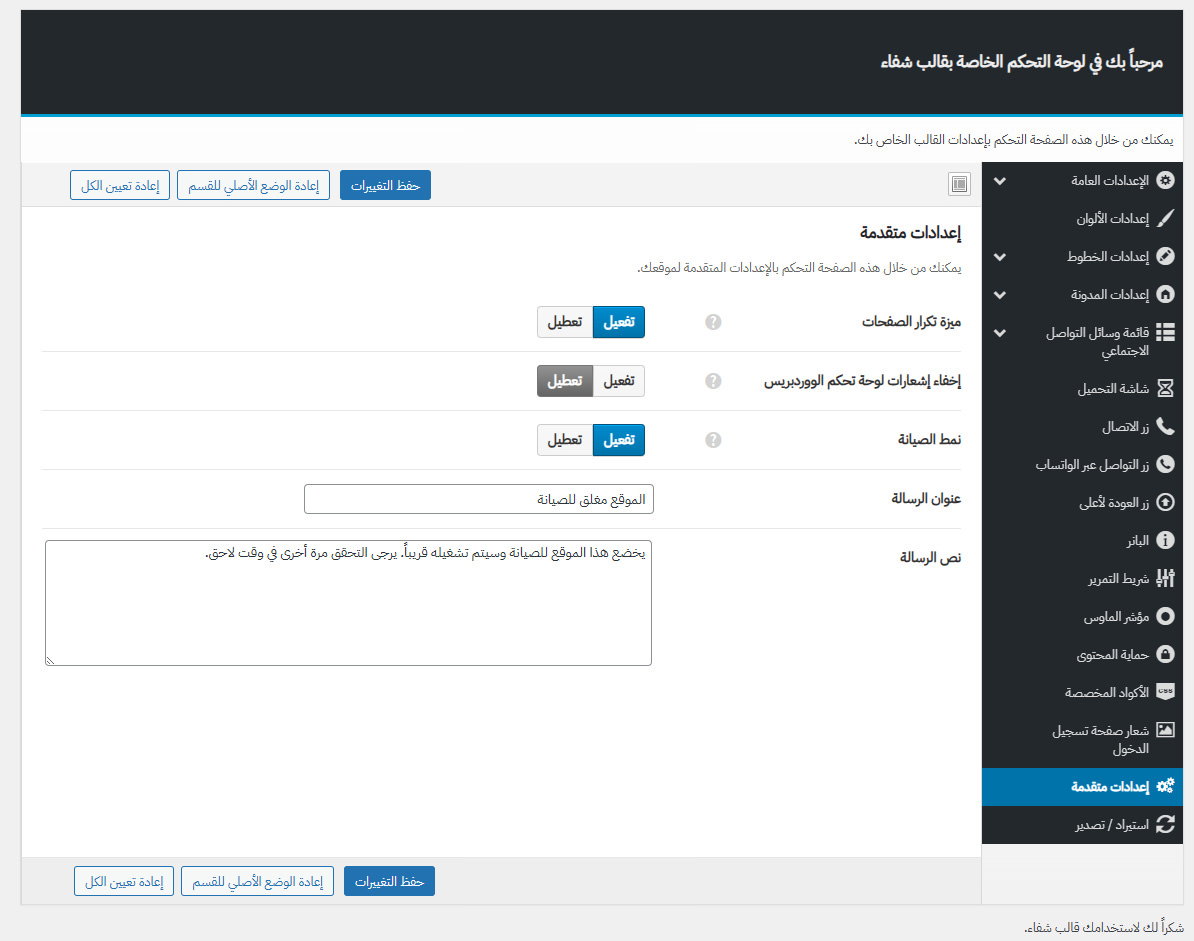 يأتي مع شفاء لوحة تحكم خاصة به غنية بالعديد من الميزات المفيدة لتستطيع تخصيص موقعك كما ترغب.