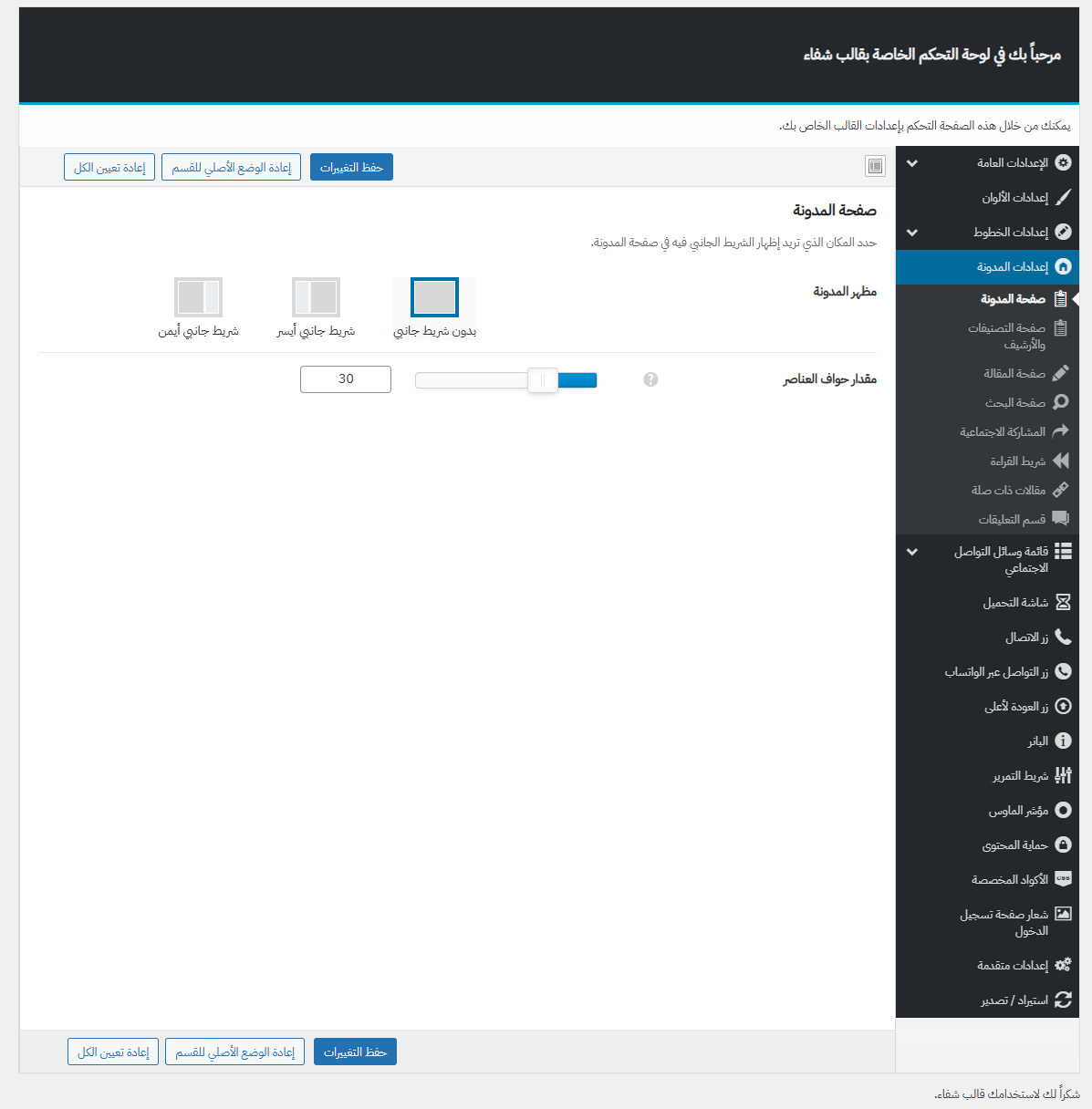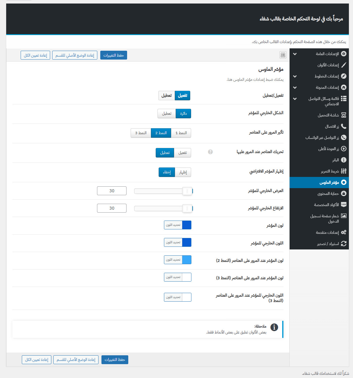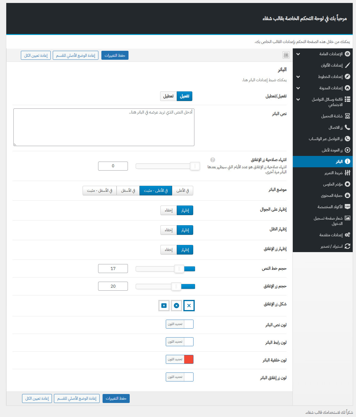 يأتي مع شفاء لوحة تحكم خاصة به غنية بالعديد من الميزات المفيدة لتستطيع تخصيص موقعك كما ترغب.