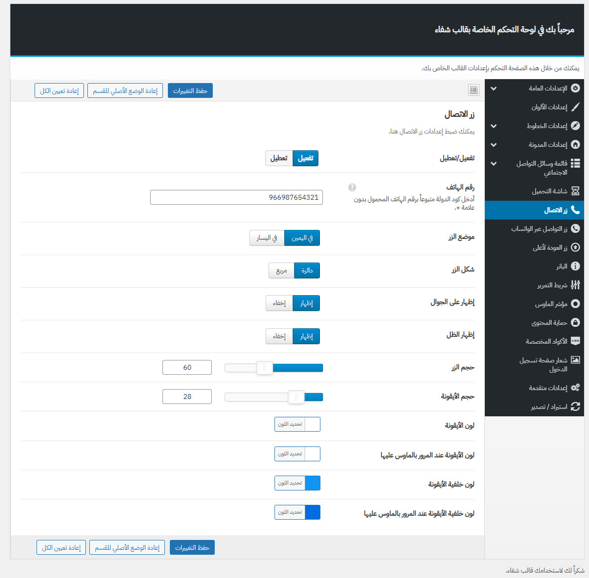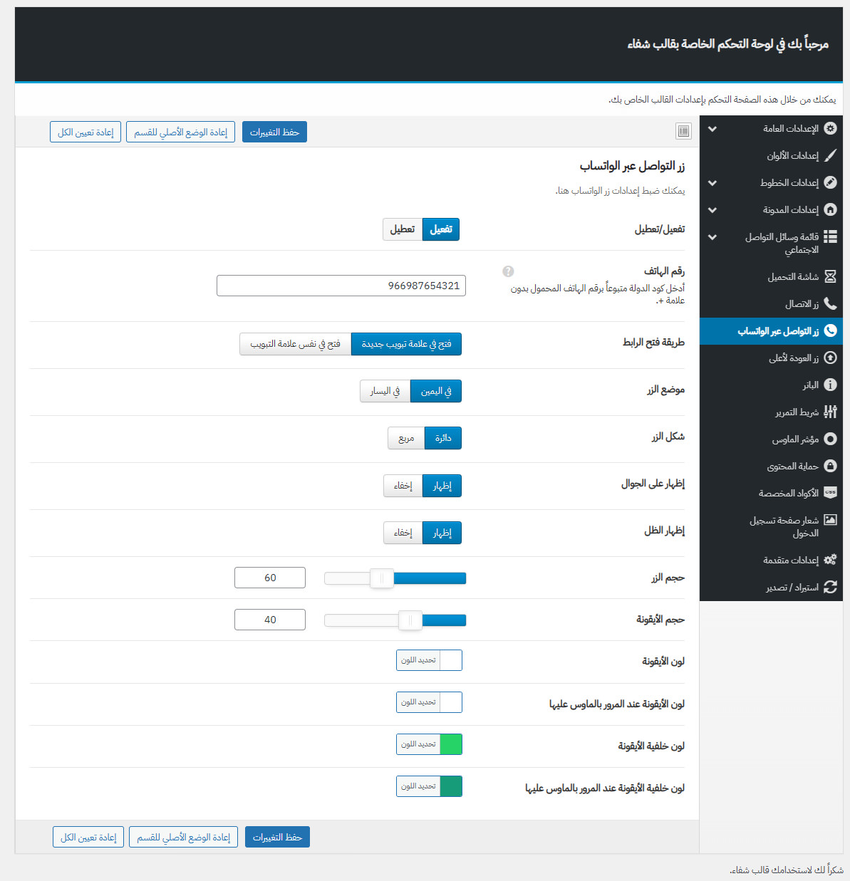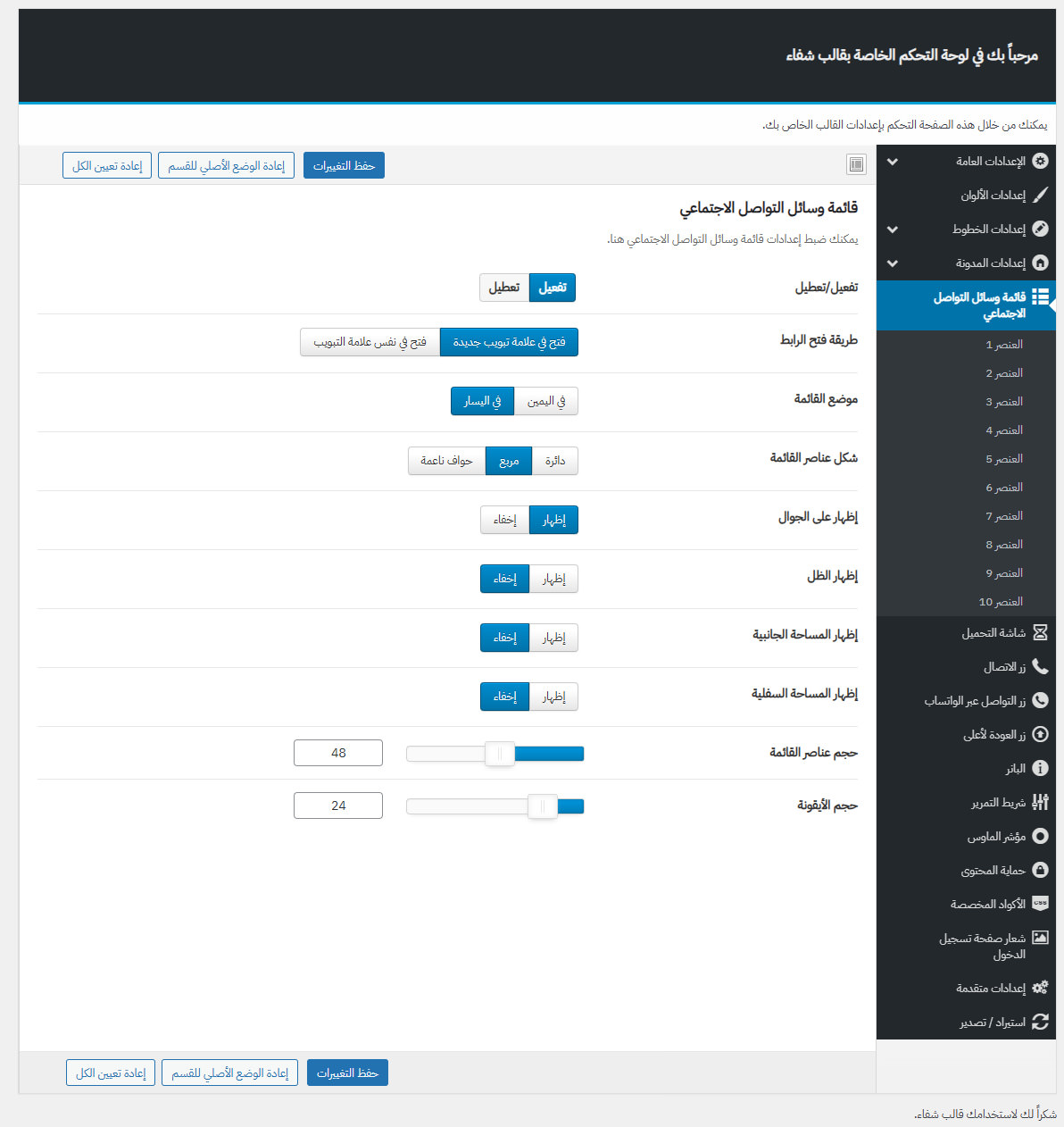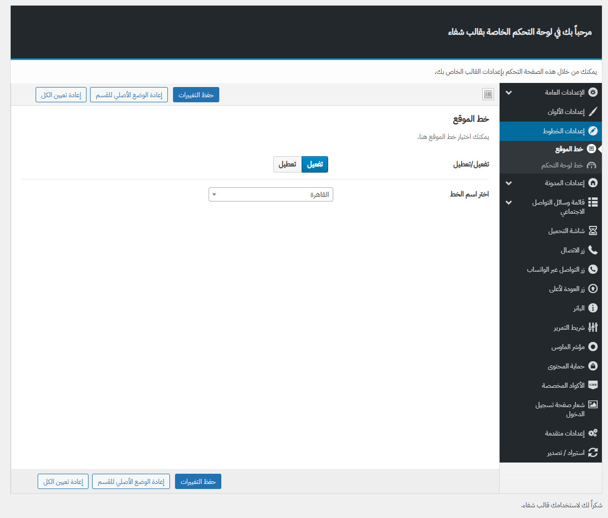 يأتي مع شفاء لوحة تحكم خاصة به غنية بالعديد من الميزات المفيدة لتستطيع تخصيص موقعك كما ترغب.