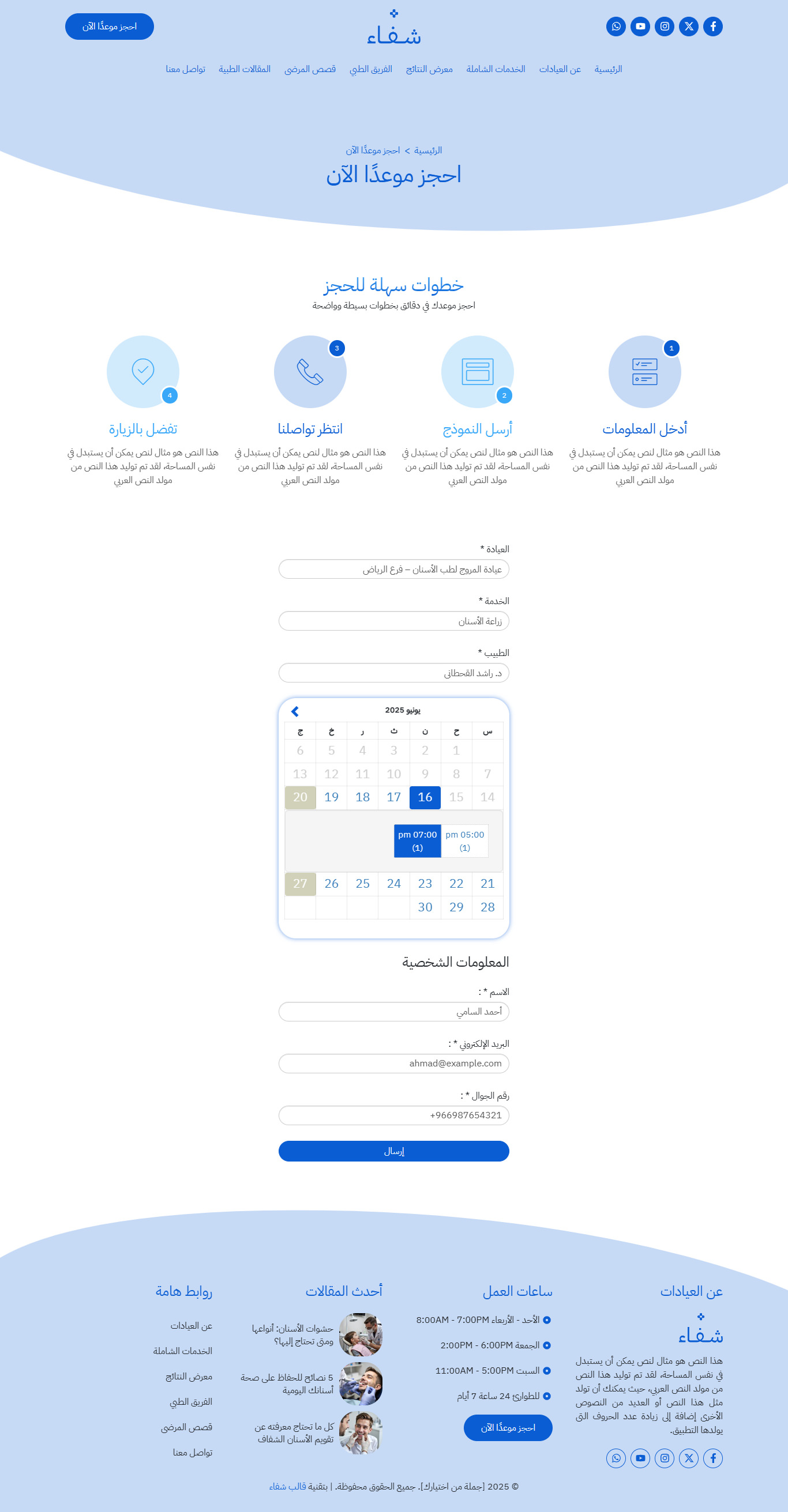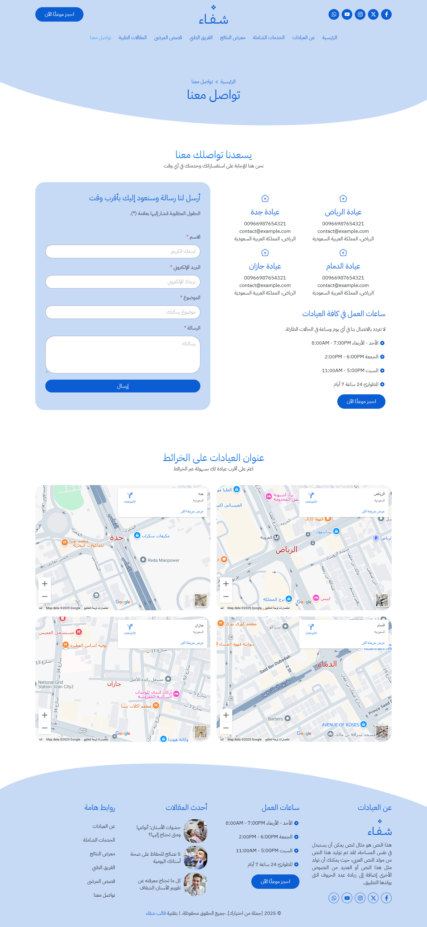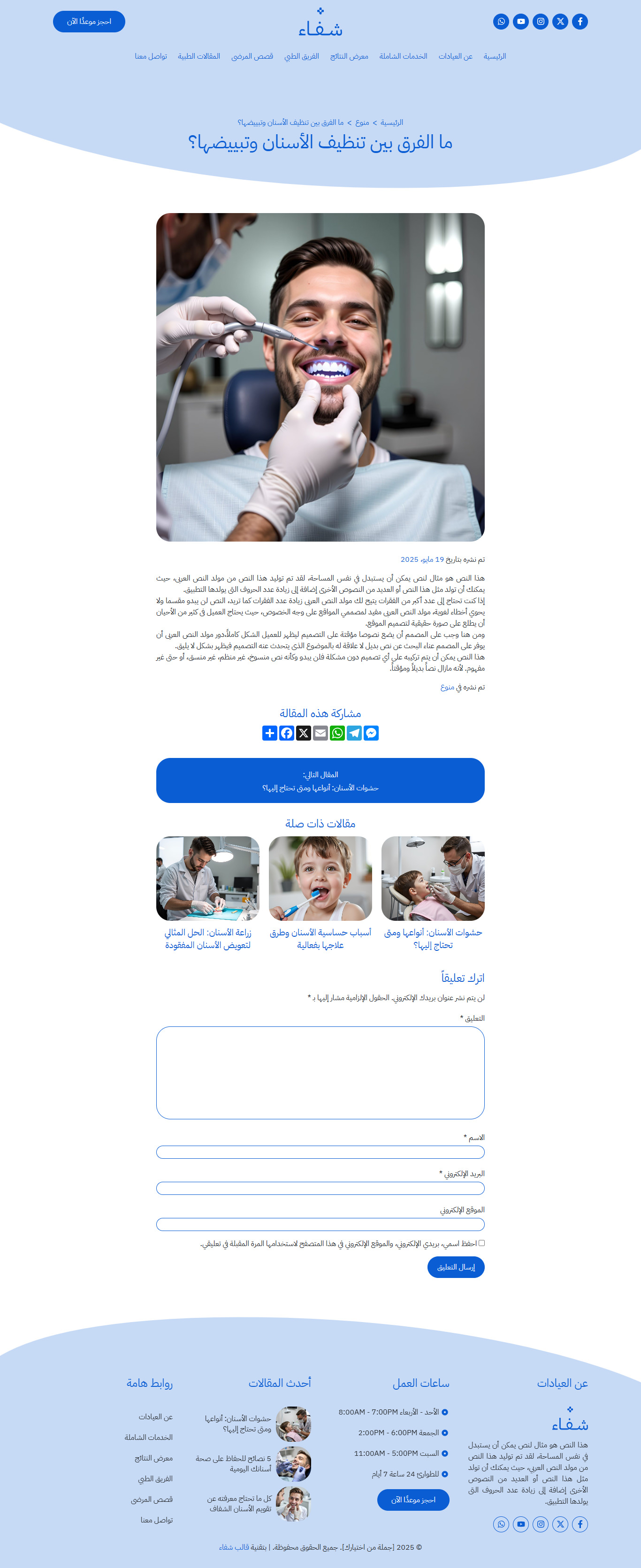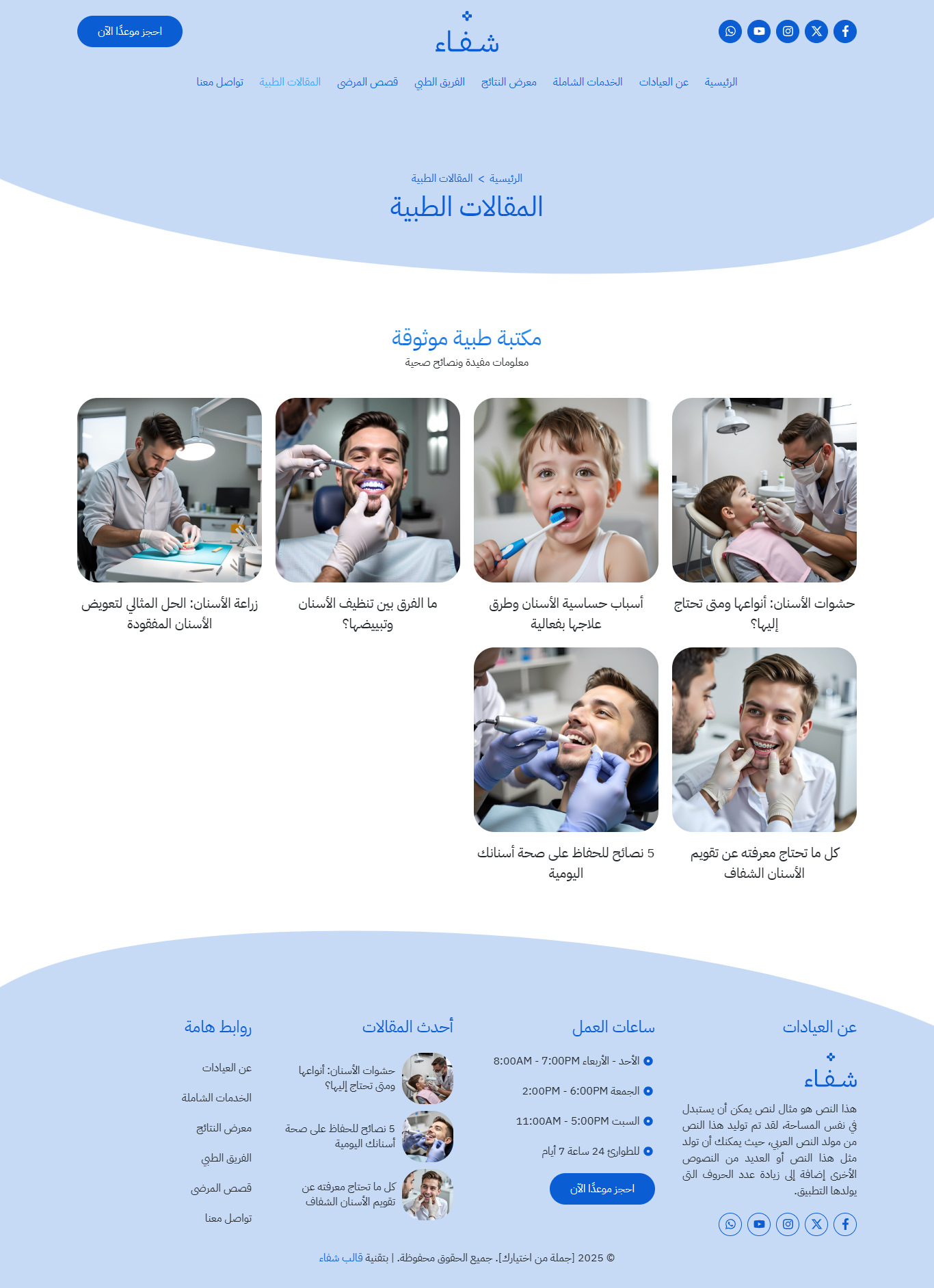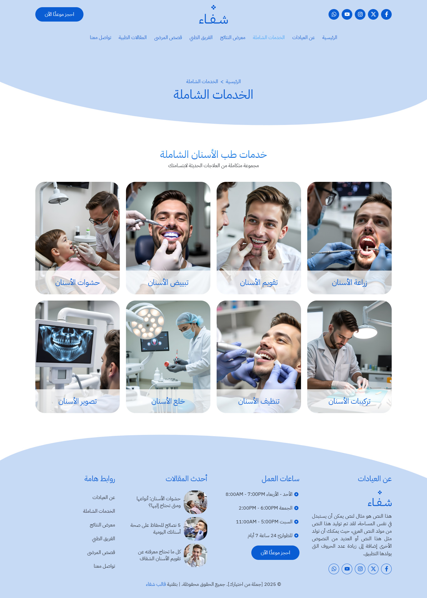 نموذج موقع عيادات أسنان شاملة
