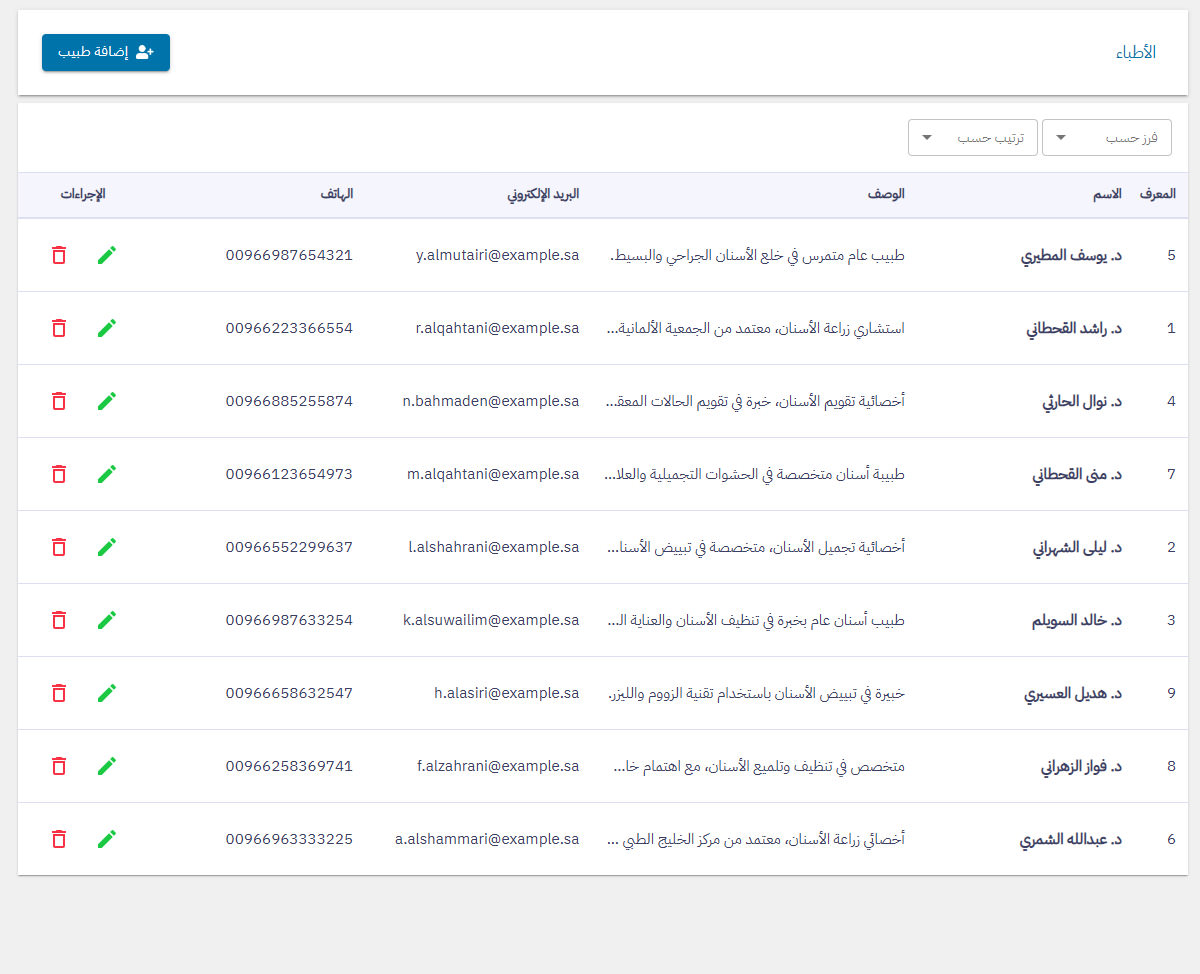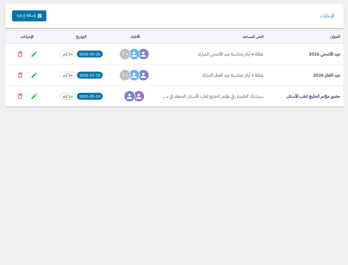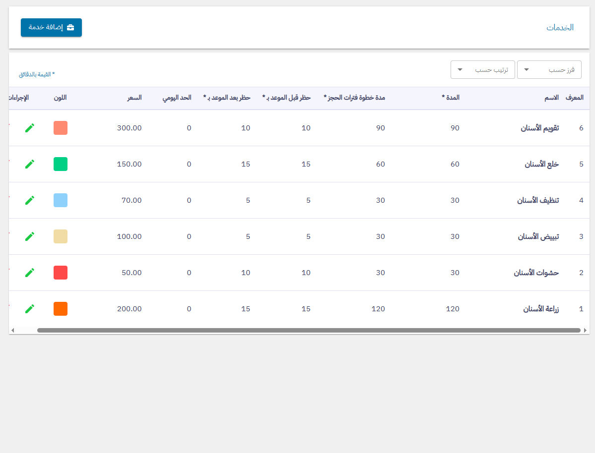 لوحة تحكم حجز المواعيد