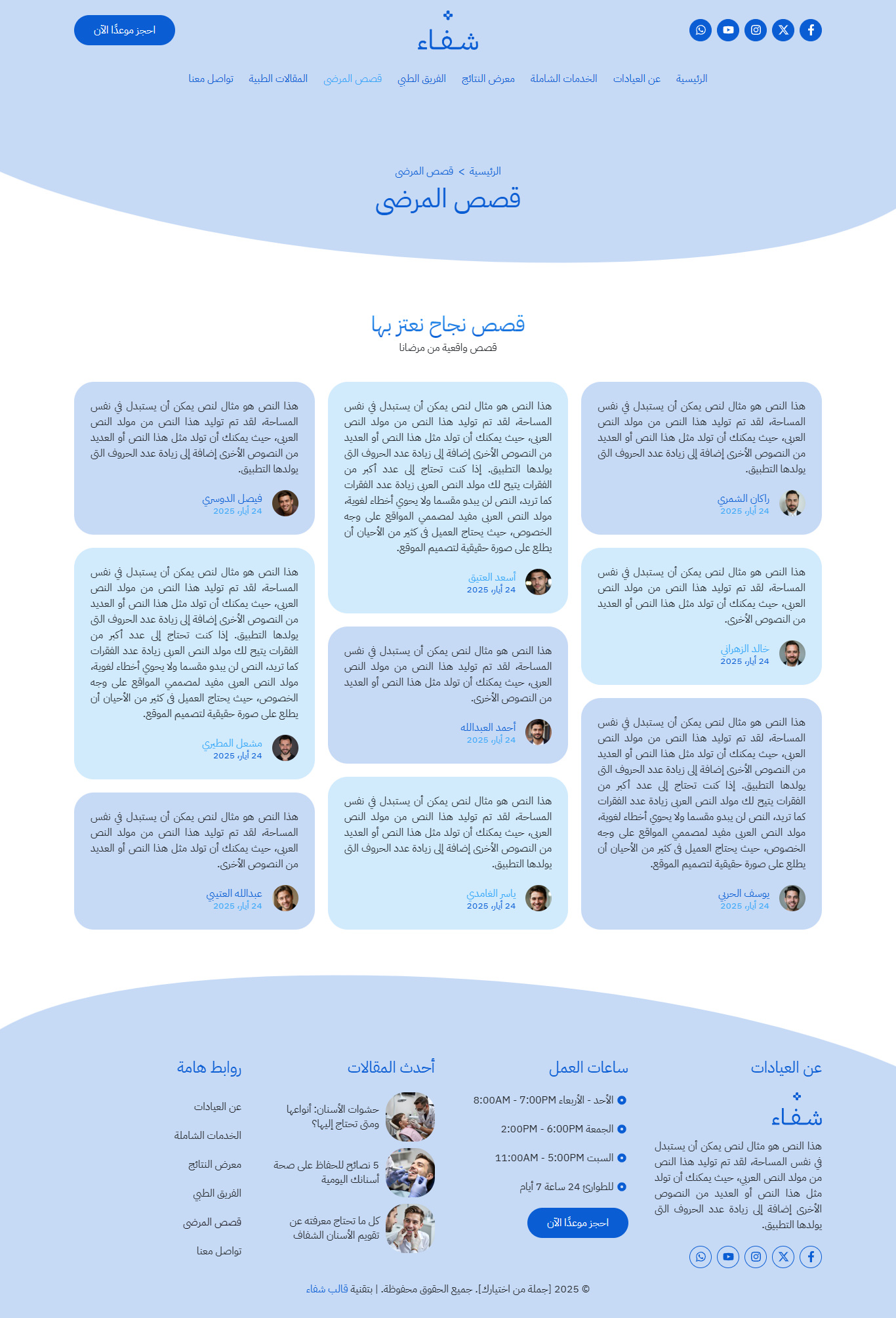 يتميز قالب شفاء بتصميم أنيق وحديث وتم تصميم صفحاته وفق أسس علمية قائمة على تجربة المستخدم.