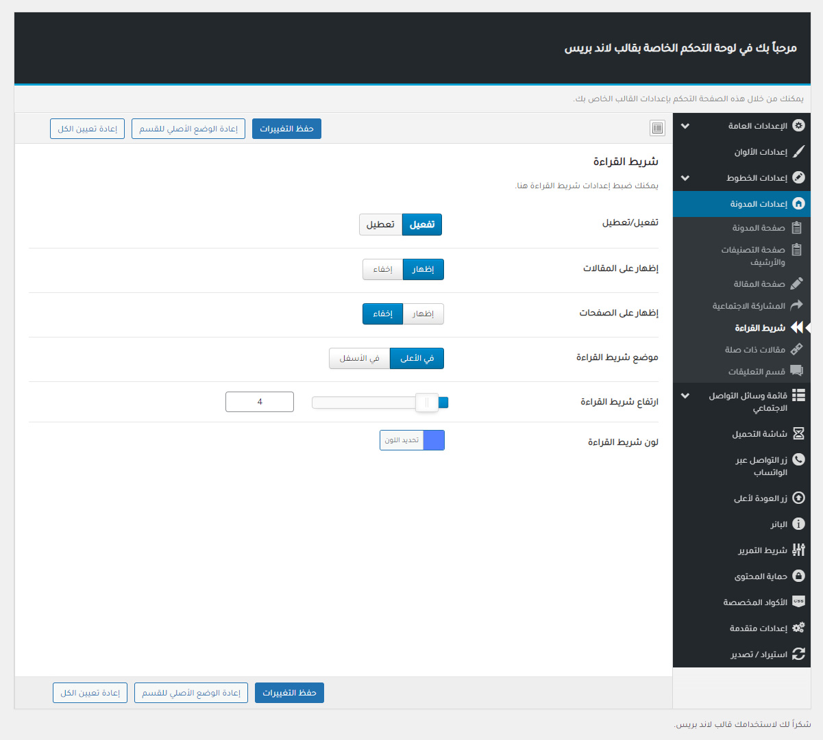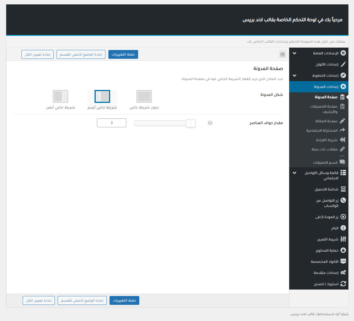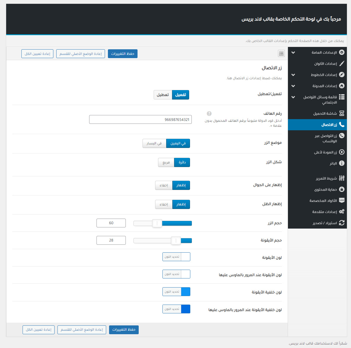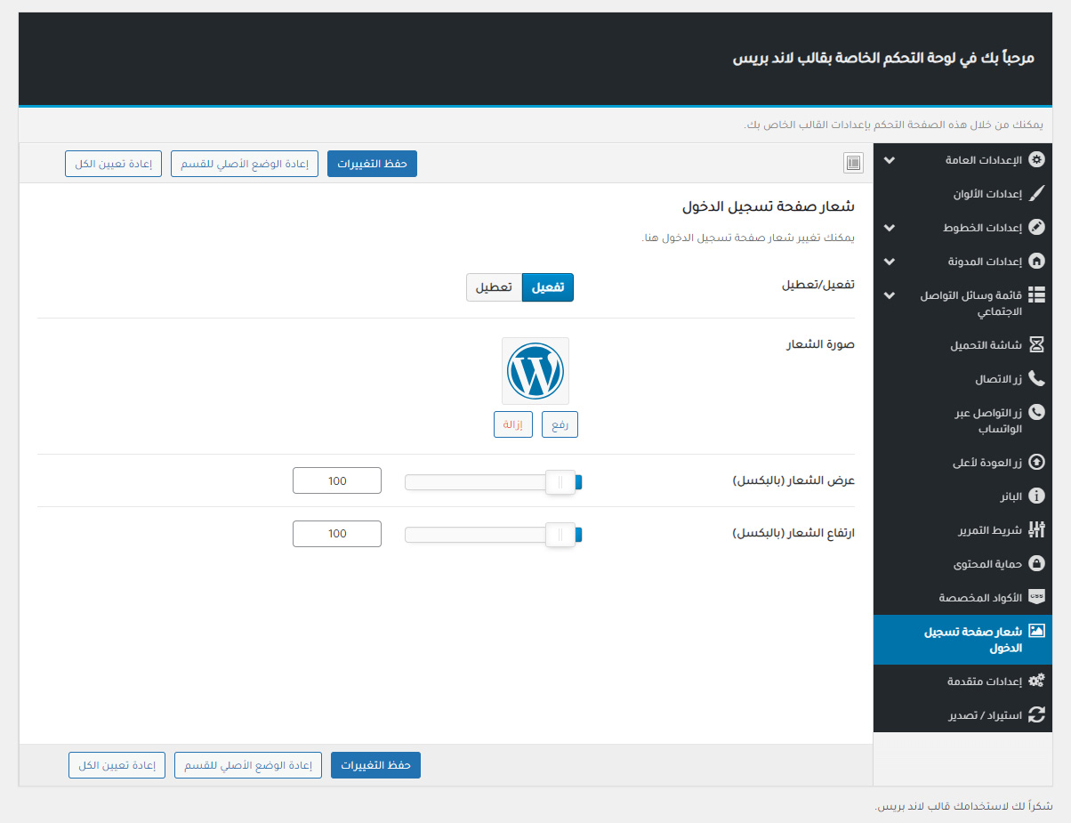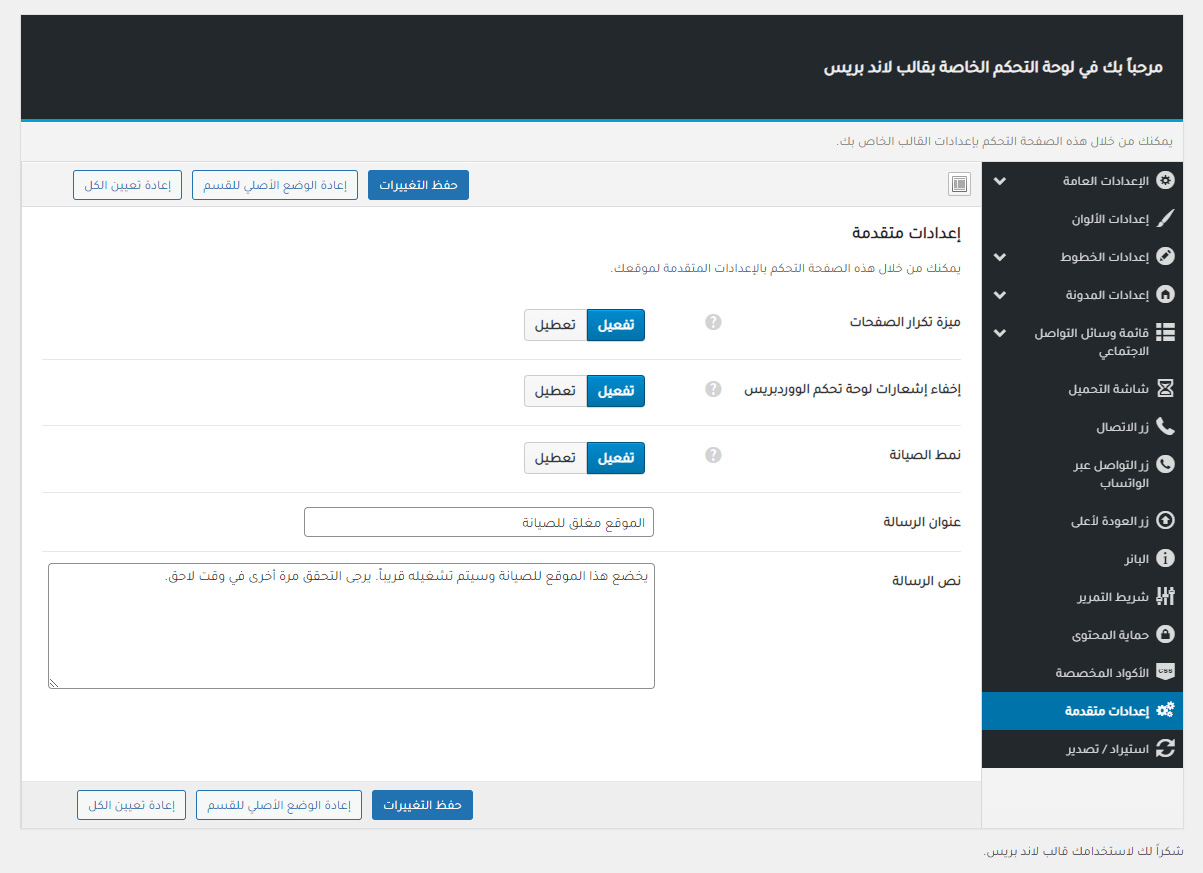 يأتي مع لاند بريس لوحة تحكم خاصة به غنية بالعديد من الميزات المفيدة لتستطيع تخصيص موقعك كما ترغب.